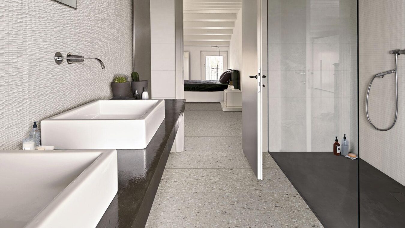 In this article we will concentrate on material looks and the 3D surfaces for bathroom wall tiles, but you can also use the solutions we suggest in the kitchen, living-room and bedroom.