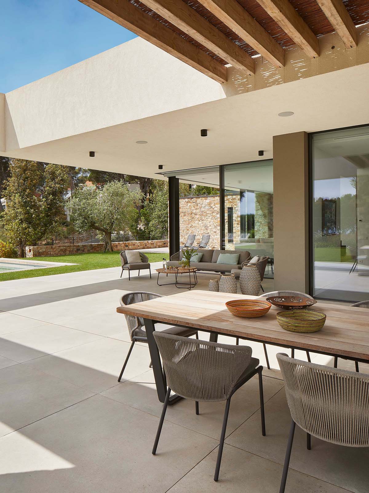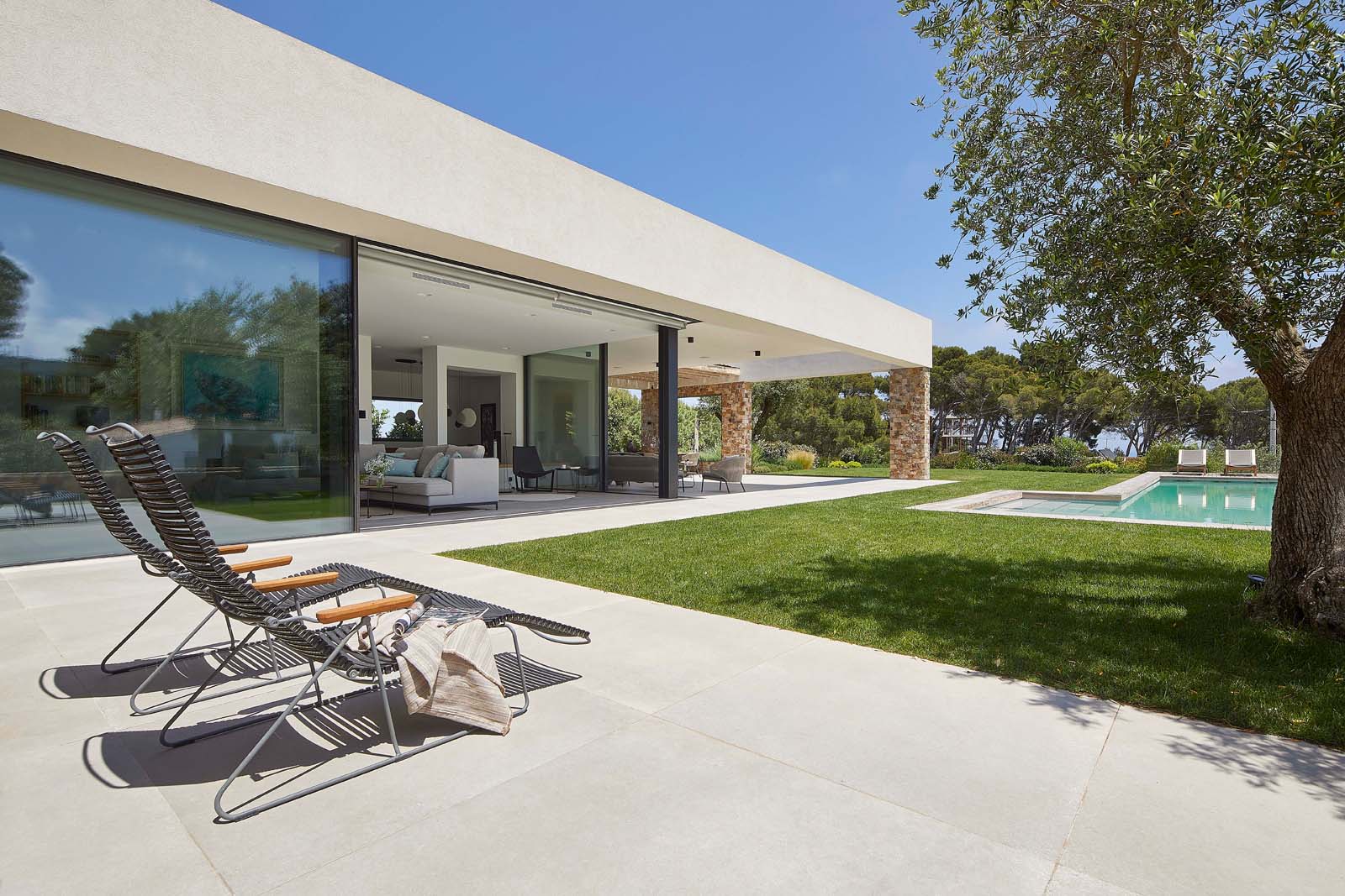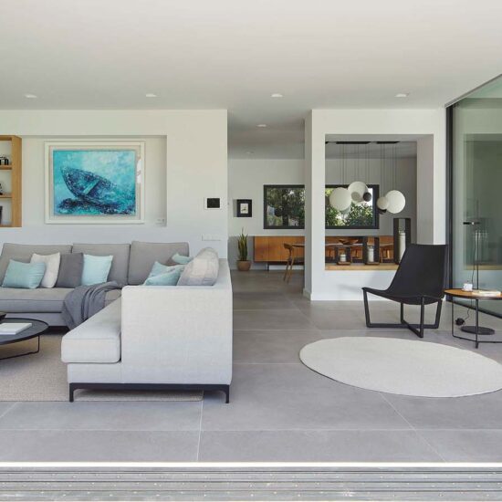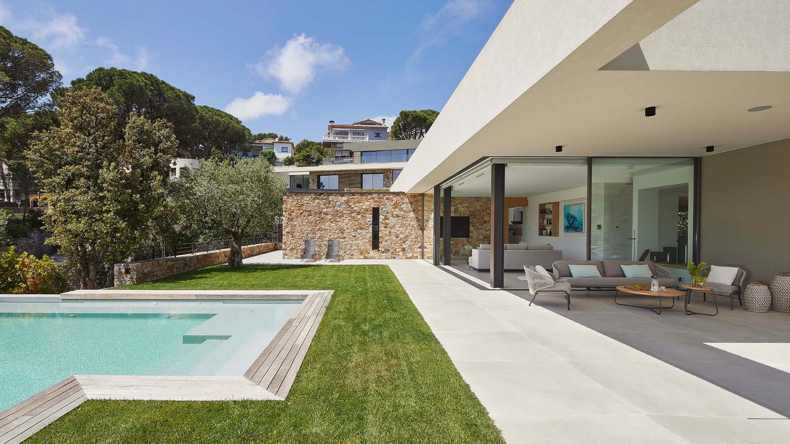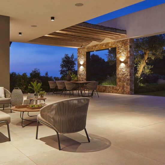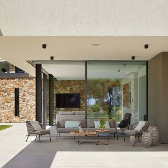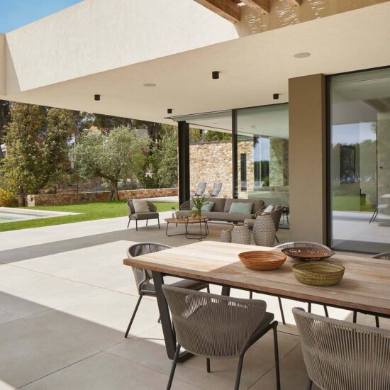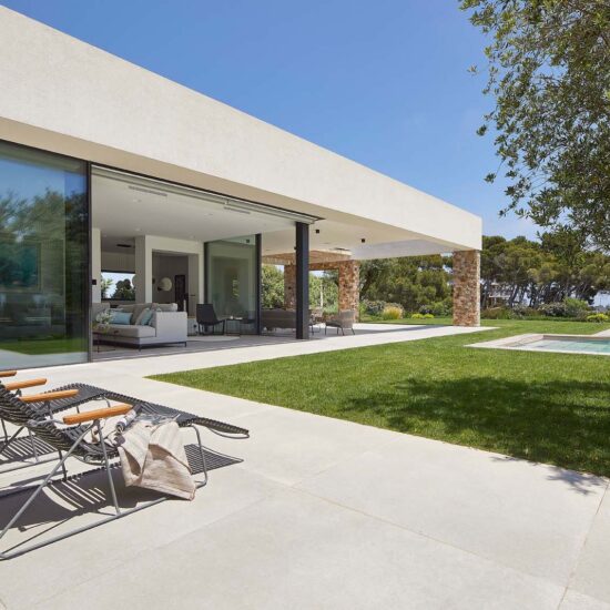 Indoor/outdoor fluidities and materials with a natural air: the house blends into the landscape thanks to Ragno’s Realstone_Rain.