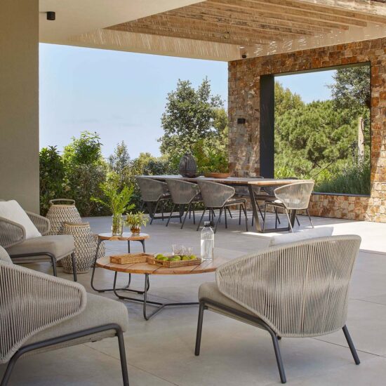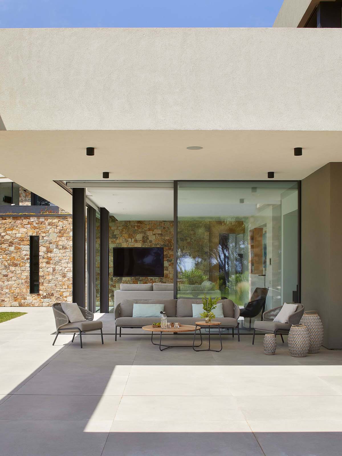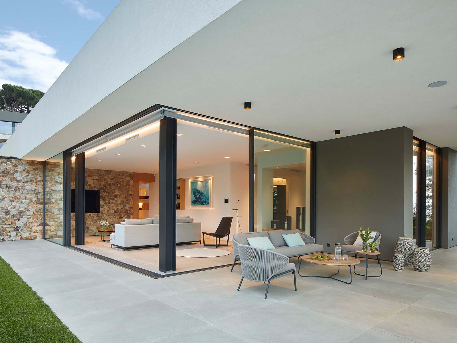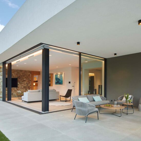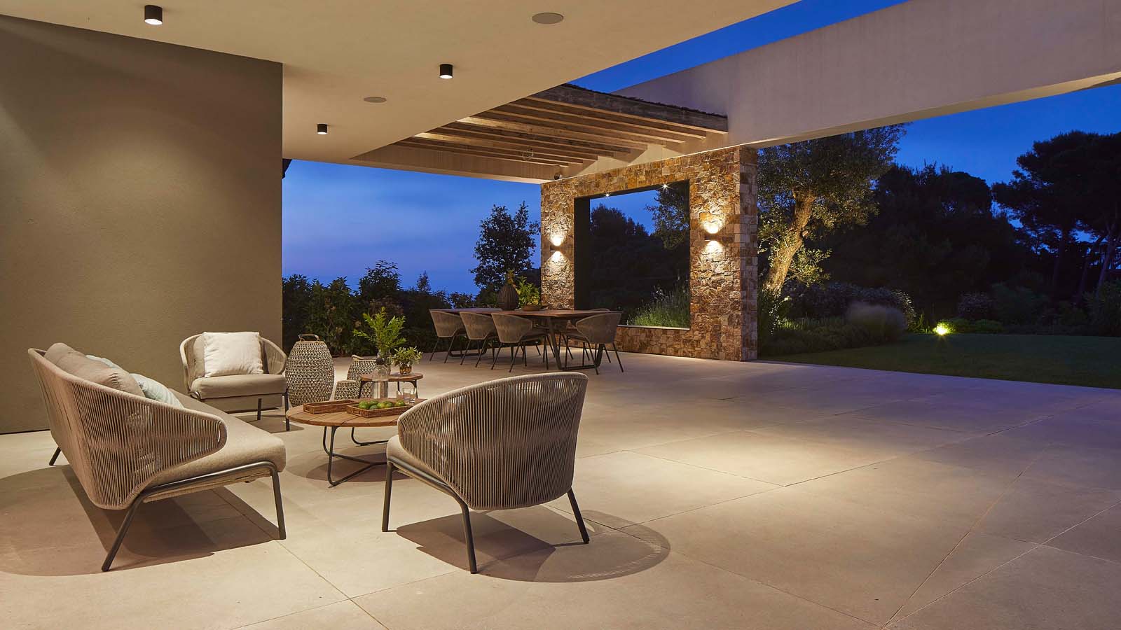 Indoor/outdoor fluidities and materials with a natural air: the house blends into the landscape thanks to Ragno’s Realstone_Rain.