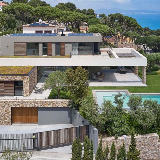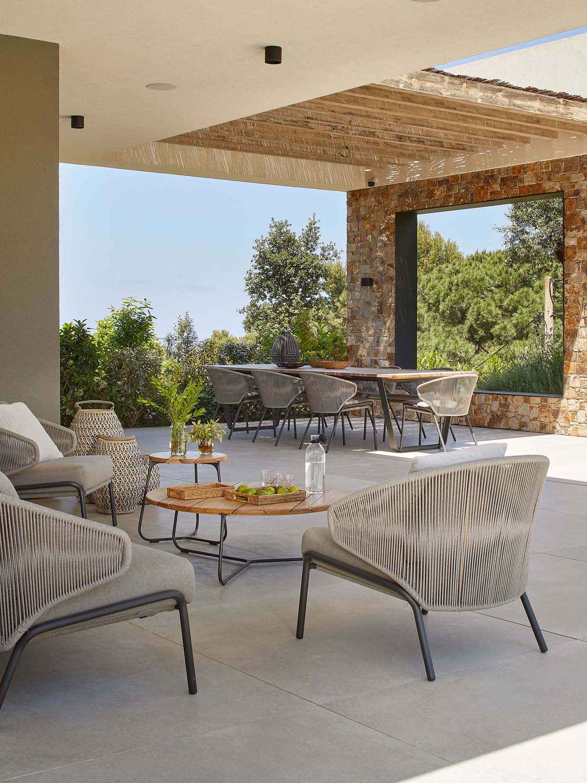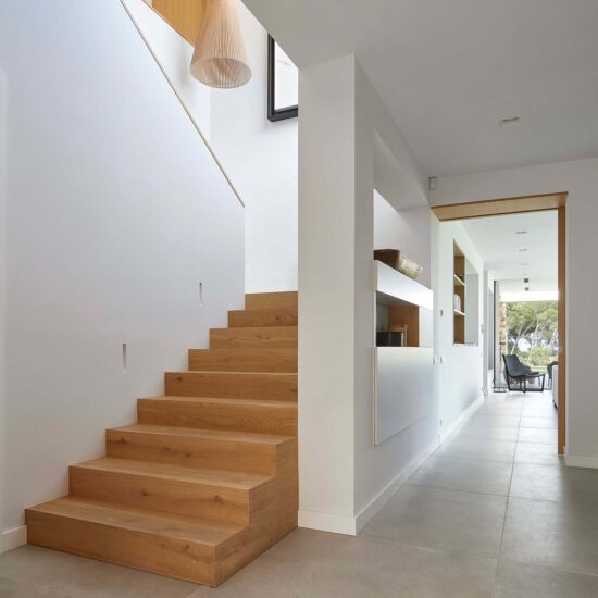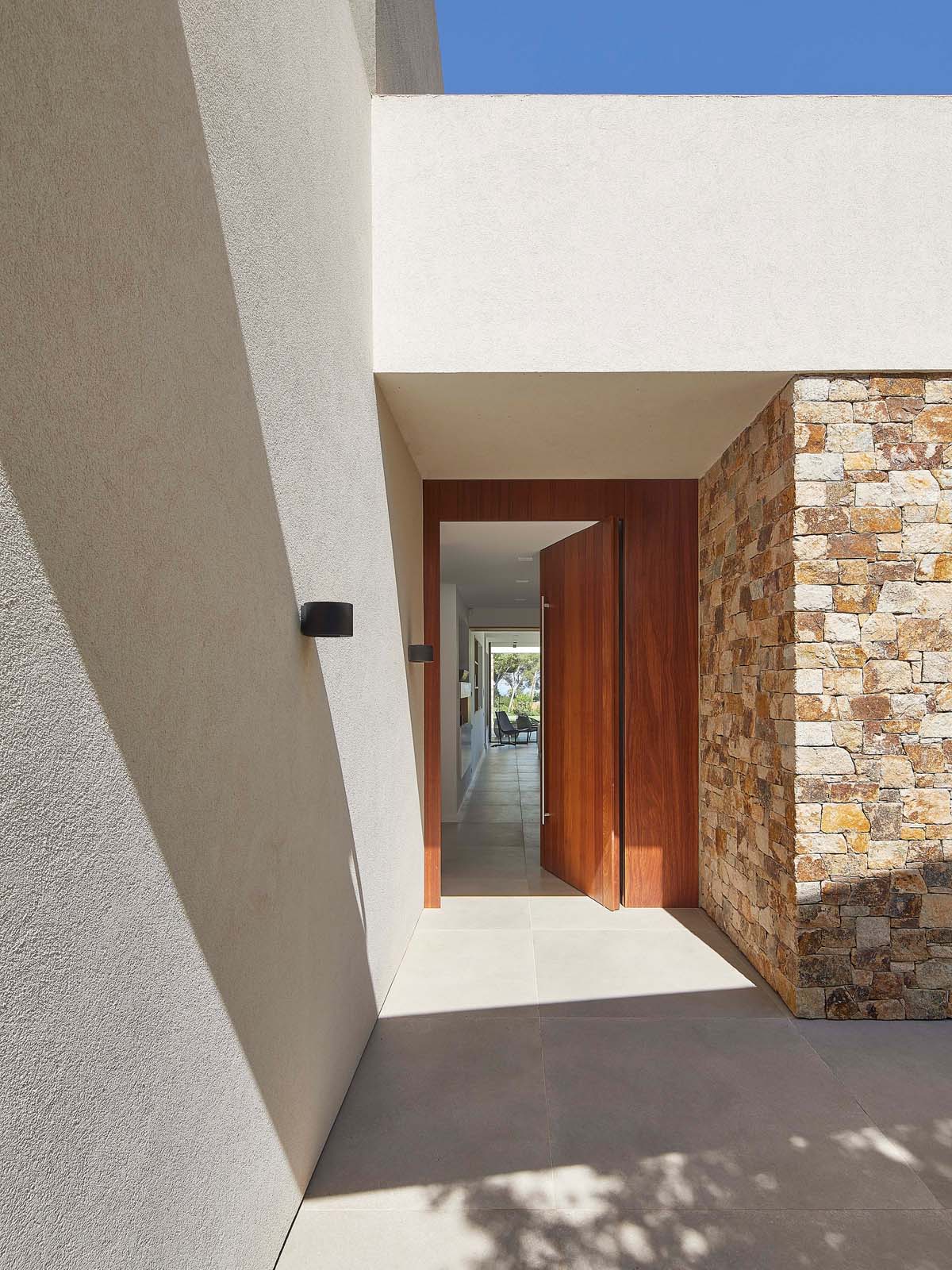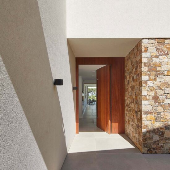 Both homes – which share a modern, minimalist aesthetic – blend perfectly into their surrounding Mediterranean landscape thanks to the use of drystone to finish some parts, matching the earthy colors of nature itself.