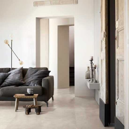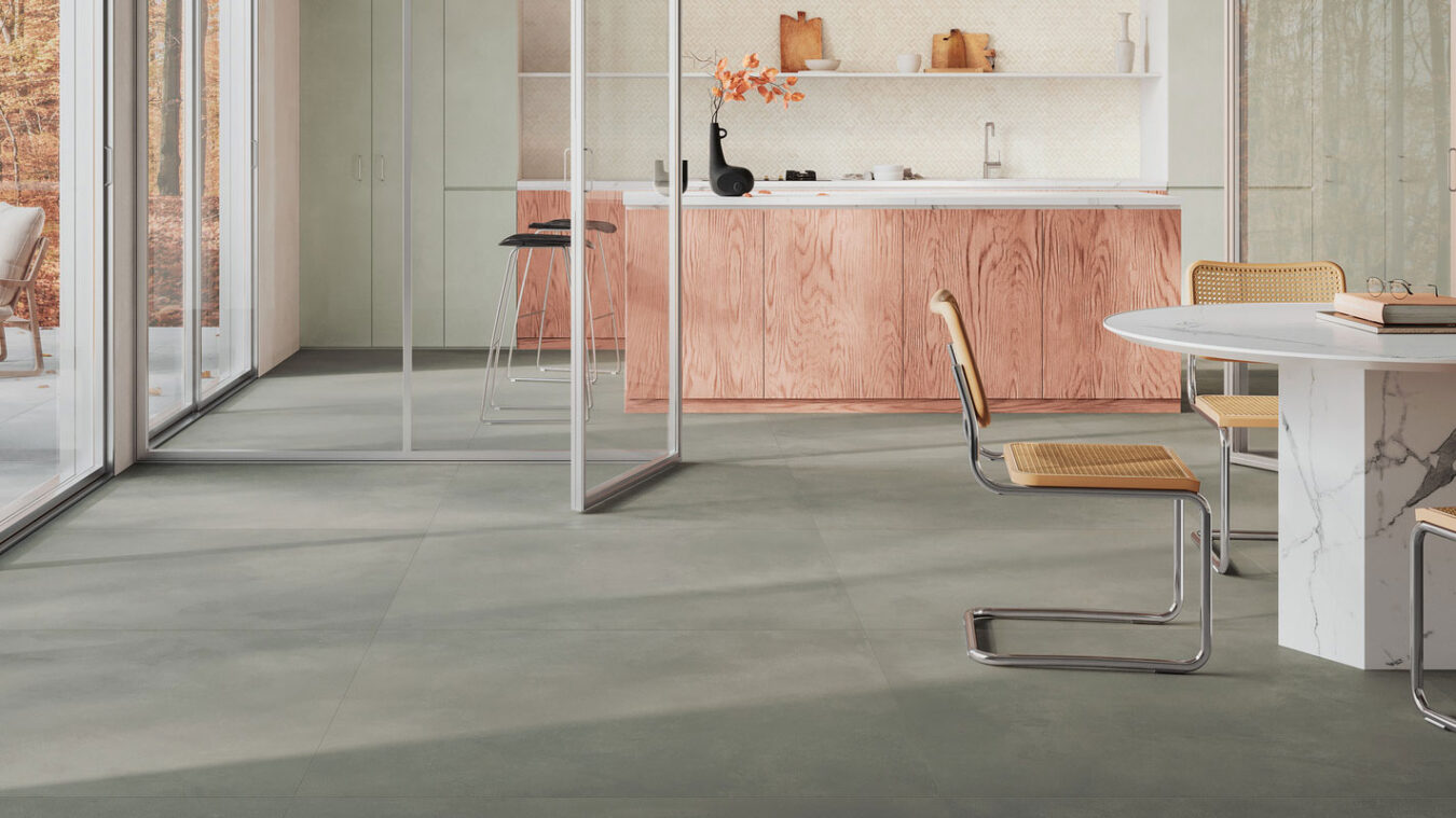The concrete effect is masterfully expressed in a sophisticated evolution of materials and graphic elements. The inspiration comes from products made from a mix of castings with different mixtures and grits. Each surface has a soft, textured appearance with subtle matt inclusions for added depth and richness in a product characterised by bold, realistic nuances that is more contemporary and versatile than ever.