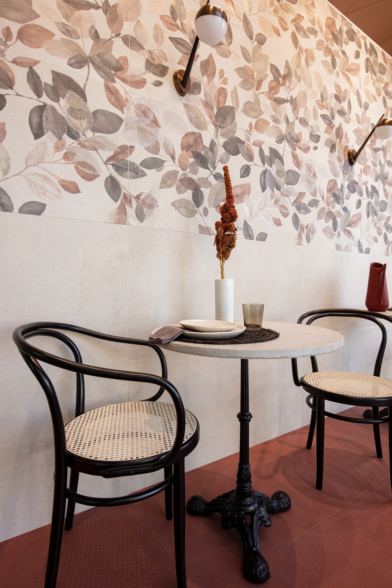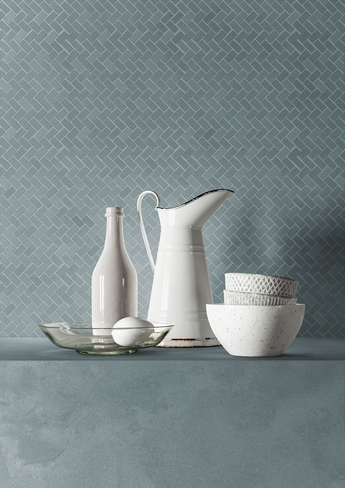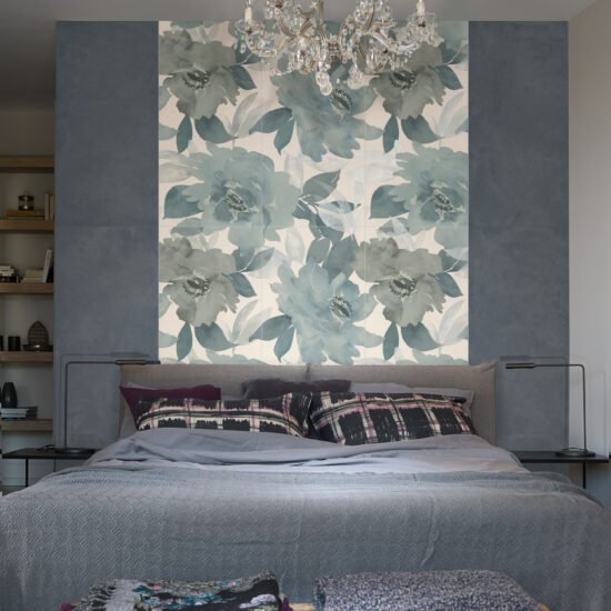 The colour range, consisting of 8 different shades, is fresh and balanced between monochrome hues of blue, green and red juxtaposed with neutral tones of grey and beige; the graphic designs of the hexagon size and the botanical and oriental-inspired patterns with foliage, 3D structures and mosaics immerse you in an exclusive living atmosphere.