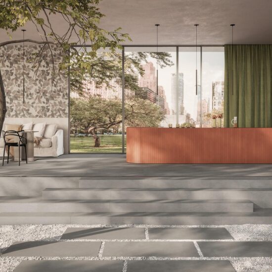 Moreover, the innovative technologies recently developed by the company enhance Stratford’s performance and tactile appeal. The series is produced with the unique StepWise technology, which guarantees high slip resistance, while maintaining a soft-touch surface that has no surface roughness and is therefore easy to clean. Thanks to BodyPlus technology, the sophisticated colours in the collection run through the entire thickness of the surface, increasing the technical performance of the porcelain stoneware. Finally, the 3D structures have been created using Sublime Sync technology, thanks to which the design perfectly integrates with the material texture, achieving an unprecedented depth and precision on both natural and structured surfaces.