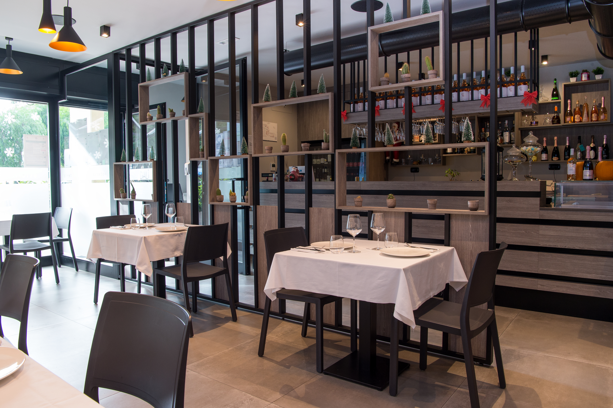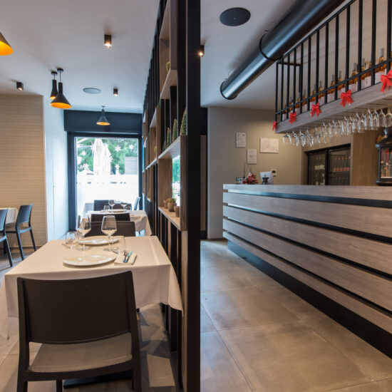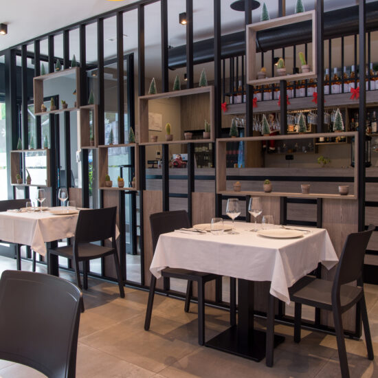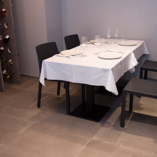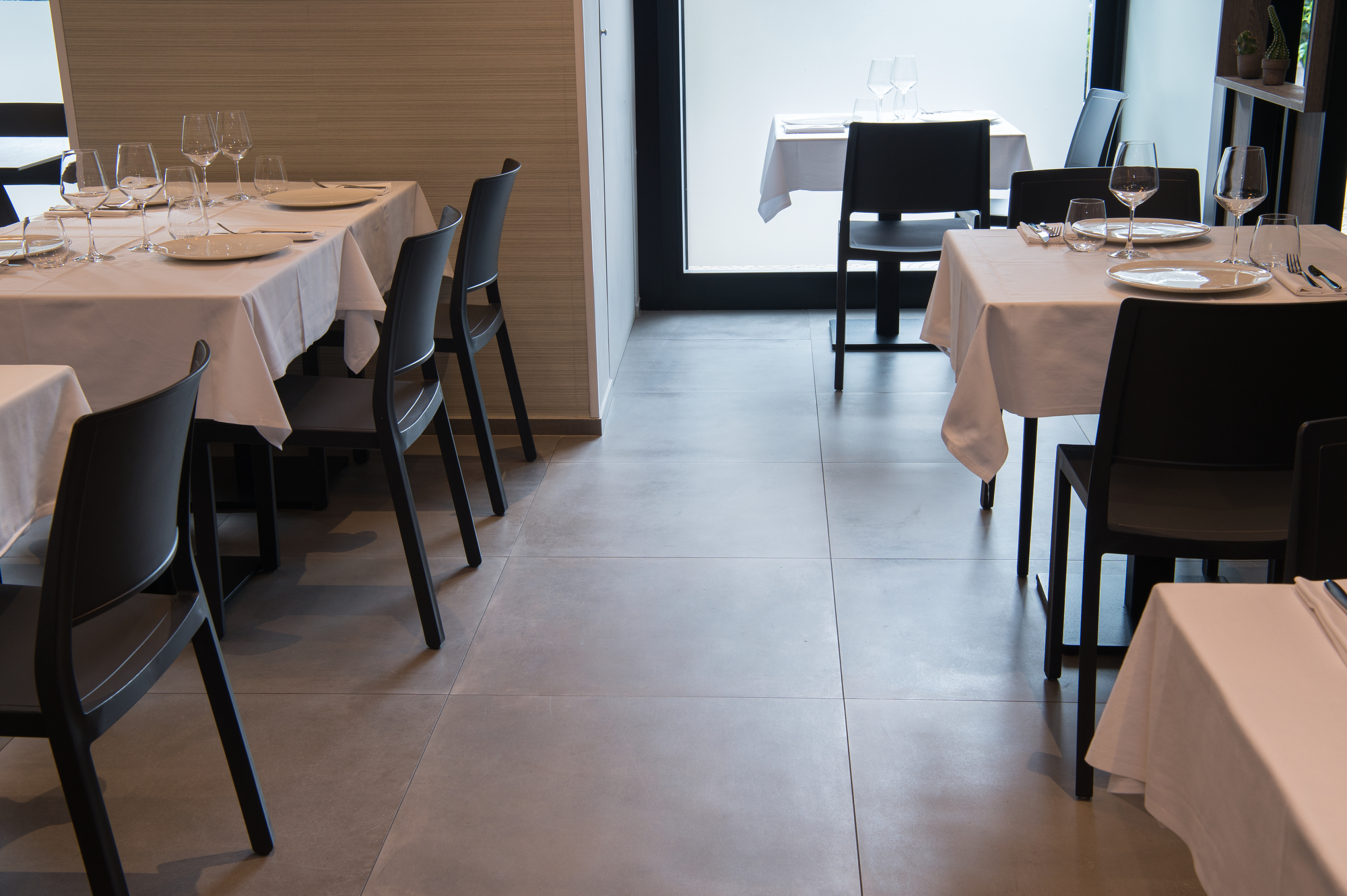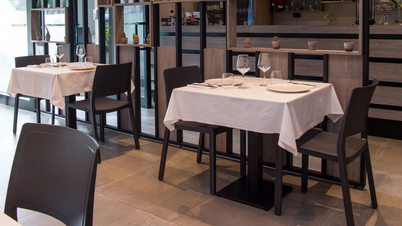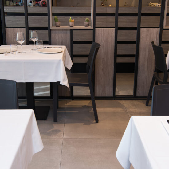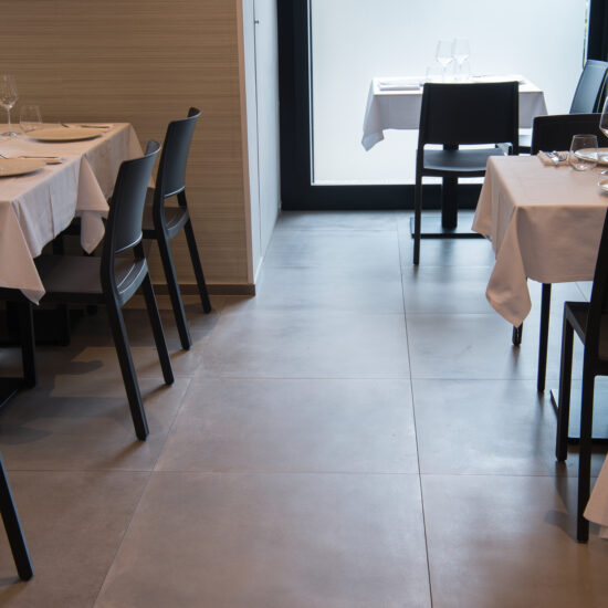 The Osteria’s doors open onto a large area with a flooring in the 75×75 cm slabs of the Patina collection in the Cognac variant which, in the Ragno catalogue, illustrate the outcome of the company’s meticulous research into the meaning of “origins” and a mix of different material impressions: metal, resin and terracotta.