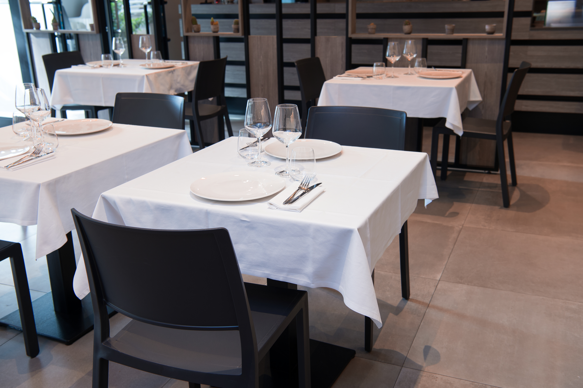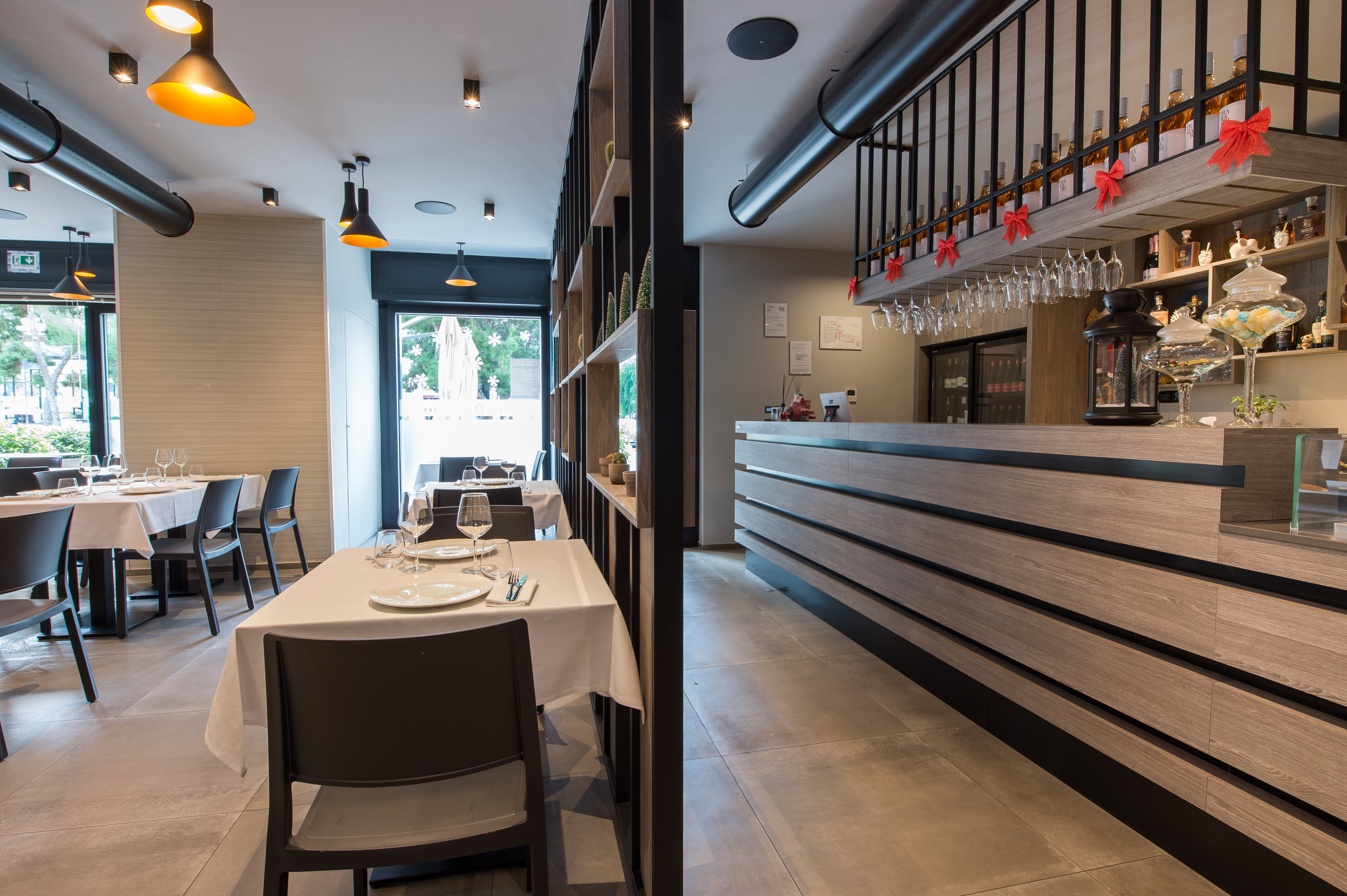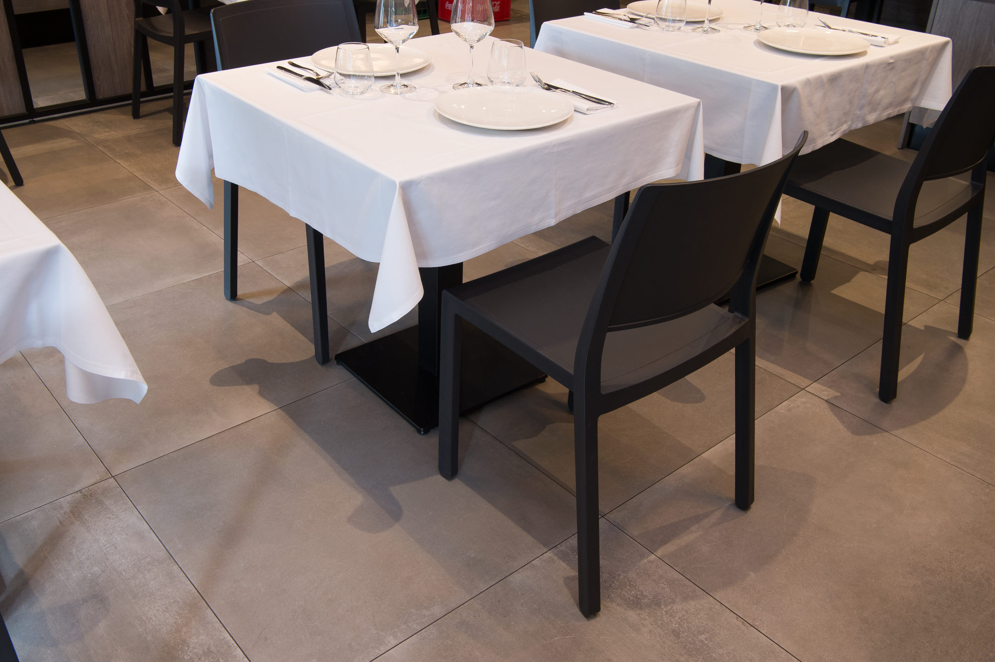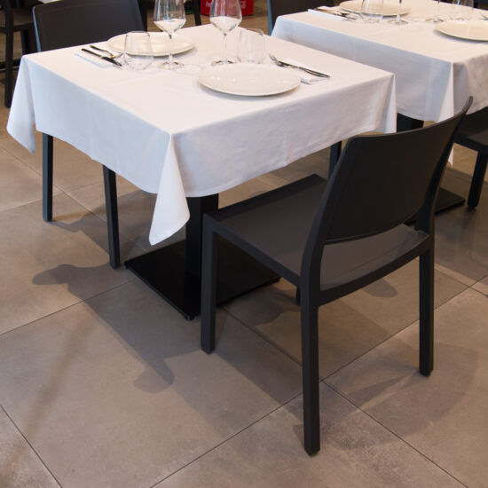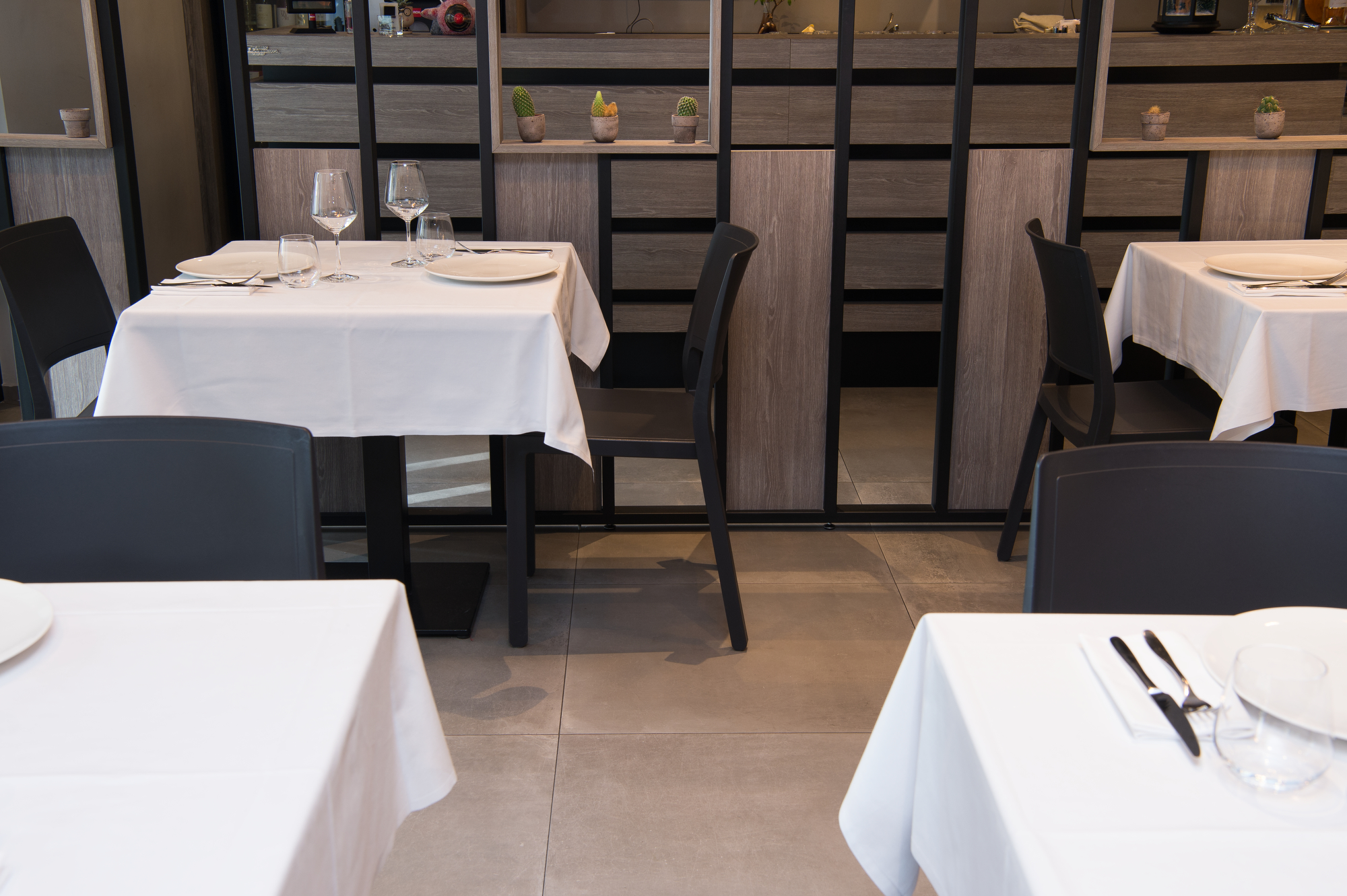 The Osteria’s doors open onto a large area with a flooring in the 75×75 cm slabs of the Patina collection in the Cognac variant which, in the Ragno catalogue, illustrate the outcome of the company’s meticulous research into the meaning of “origins” and a mix of different material impressions: metal, resin and terracotta.