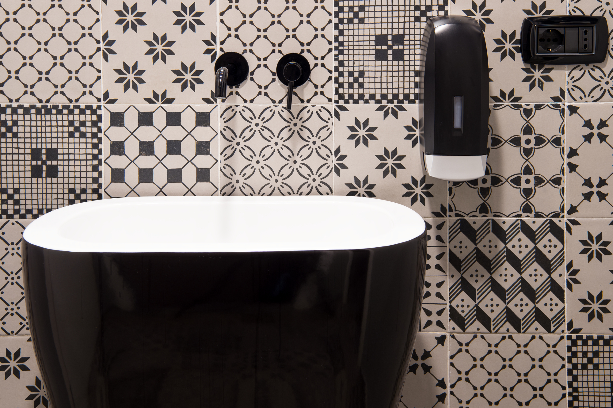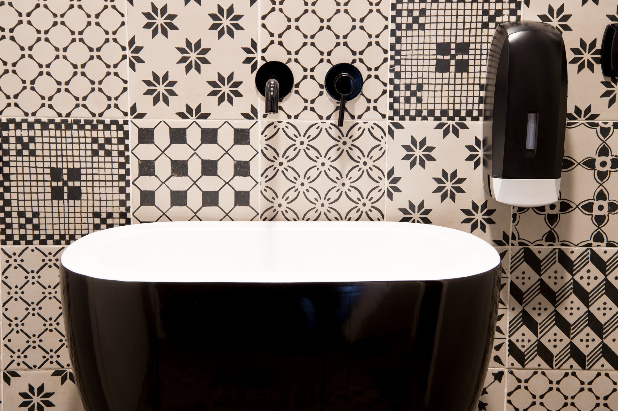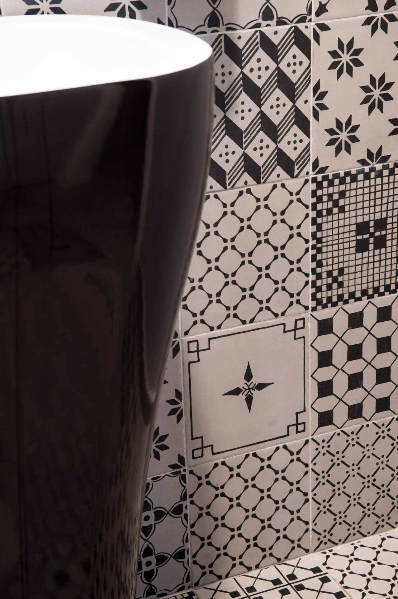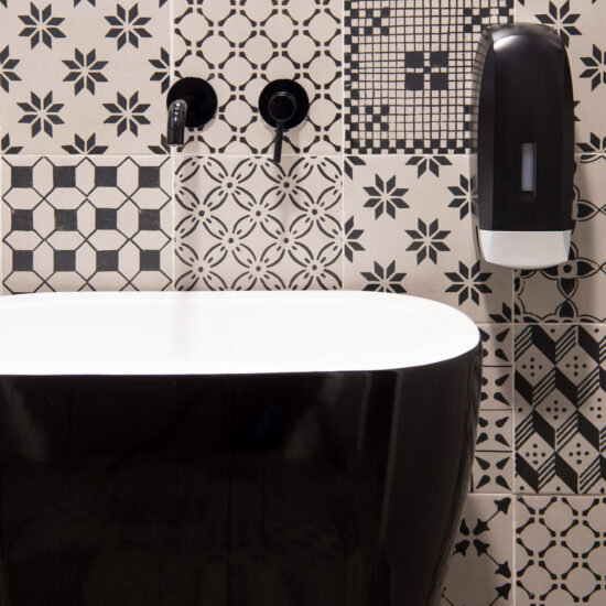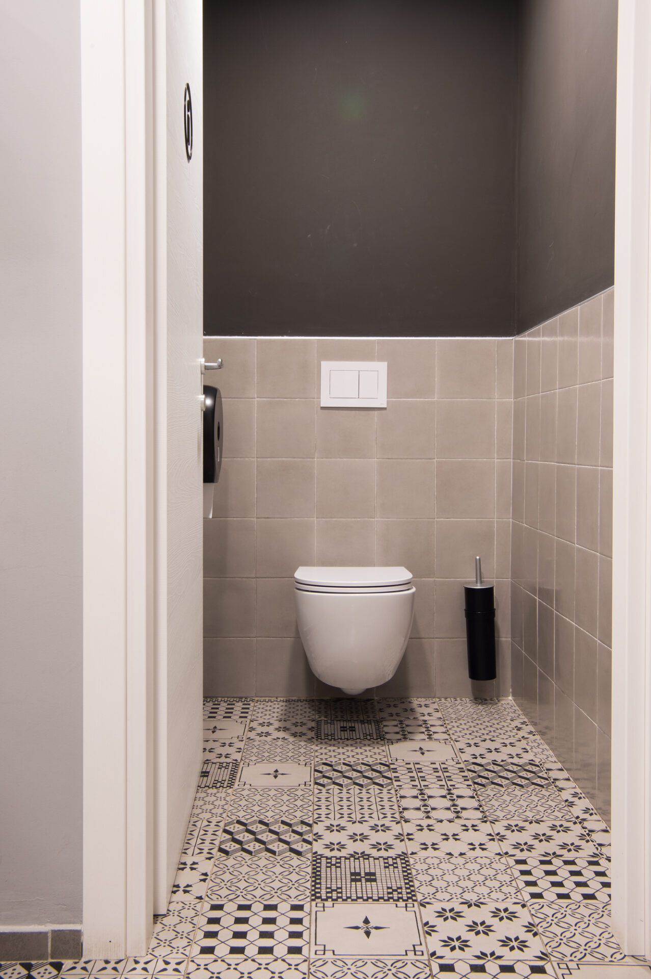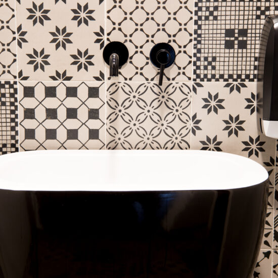 The Michele Carbonara architecture firm, which styled the Osteria Dalì, decided to give the toilets, a continuation of the project’s interior design, a strong, highly decorative character. The pattern, in an elegant graphic black&white, was created with the A_Mano collection: just one 20×20 cm size but infinite creative potentials.