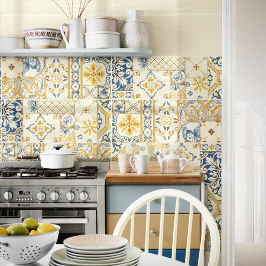 The most immediate is without doubt the one that connects the Motivo digital decor with the Portuguese tradition of azulejos, the ancient glazed terracotta tiles.