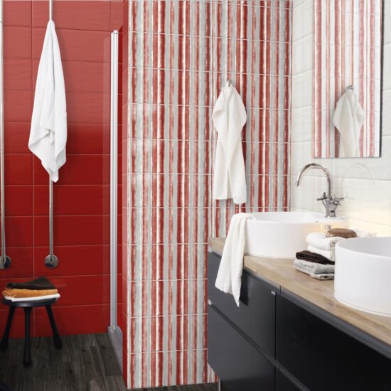 The new Candy collection, inspired by ancient glazed tiles, offers a contemporary twist on the concept of decorative bathroom and kitchen wall coverings