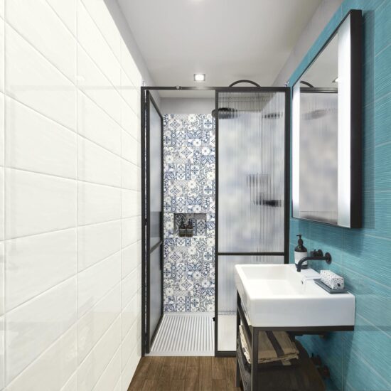 The ingredients of the old majolica wall covering recipe produce a number of aesthetic effects that make the collection distinctive right away and associate it, in the collective imagination, with highly recognisable environments: kitchens where meals are produced with meticulous care and attention and bathrooms with bright and shiny surfaces where even the daily habit of taking a shower is transformed into an intimate and private wellbeing ritual.
