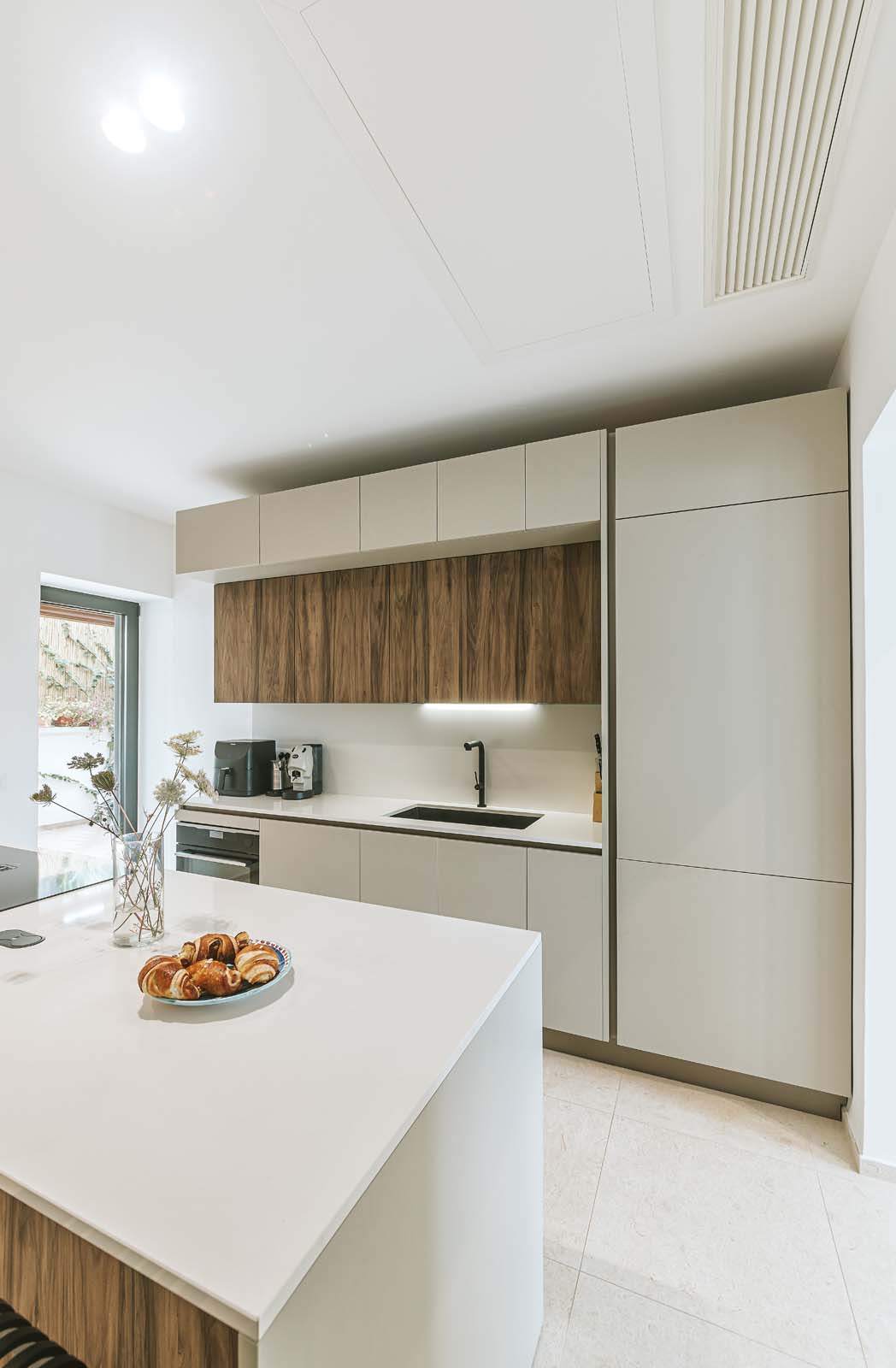 Eterna is manufactured with a high percentage of recycled material (40%) and its composition is similar to that of sedimentary rock, giving the project a natural, authentic look. This choice not only enhances the interior design with timeless beauty but also reflects a strong commitment to environmental sustainability.