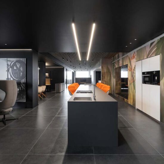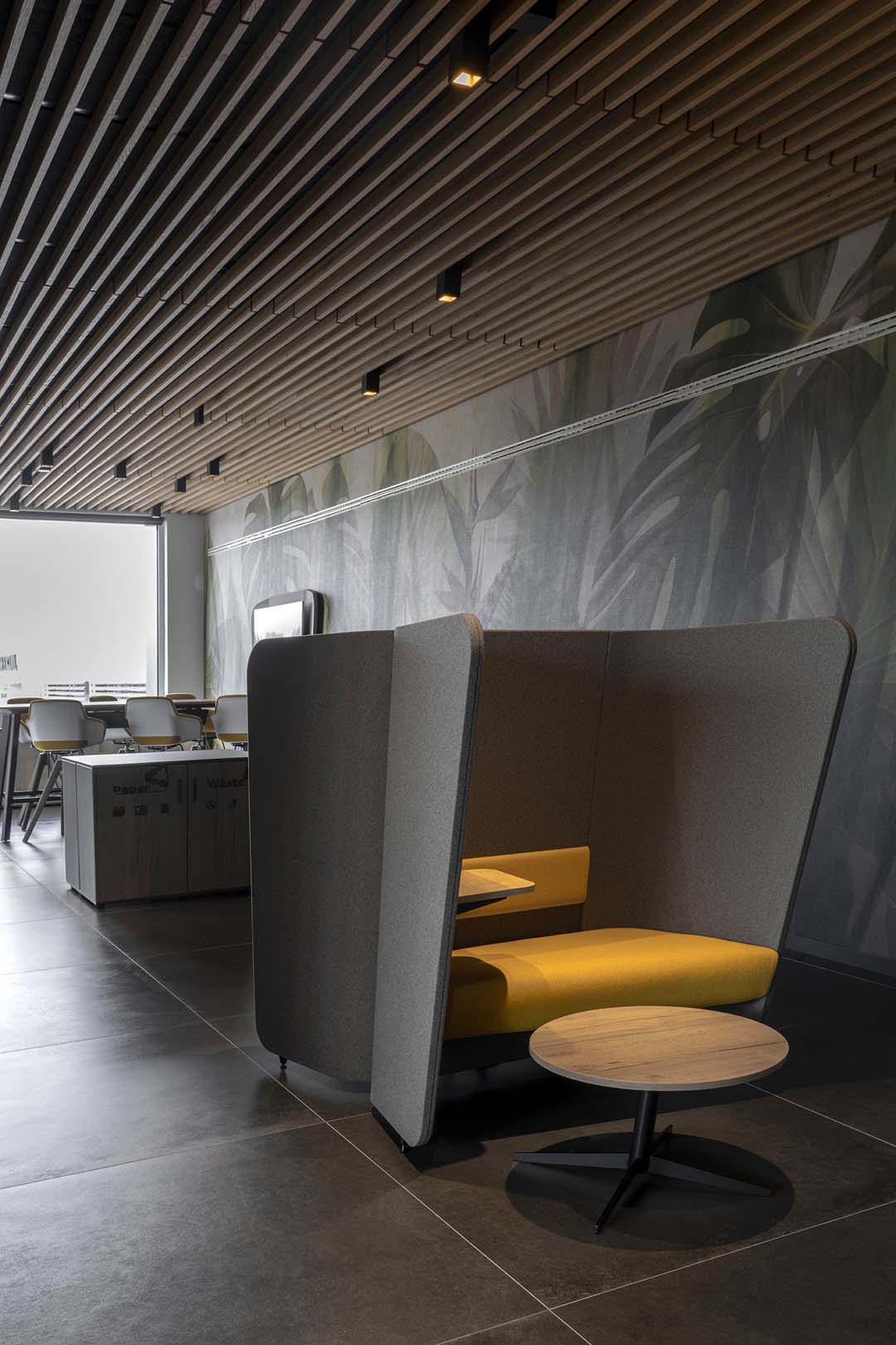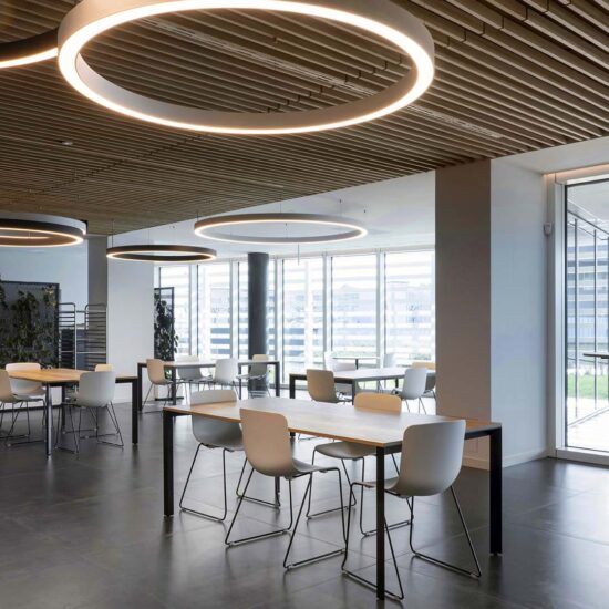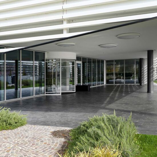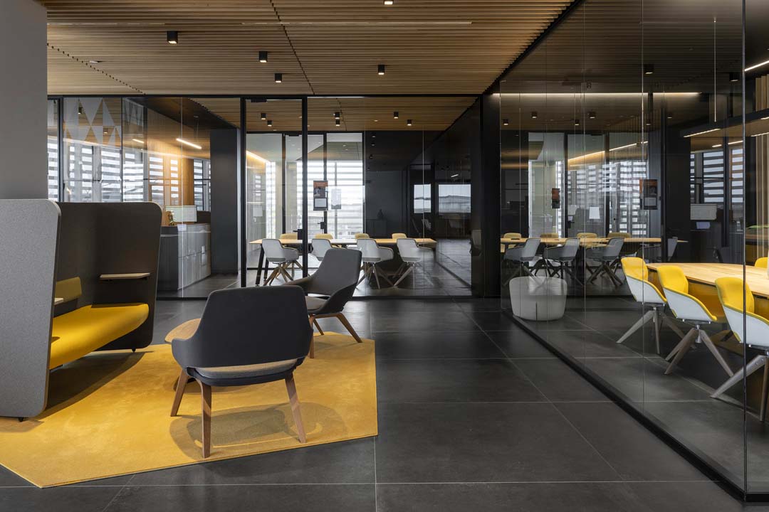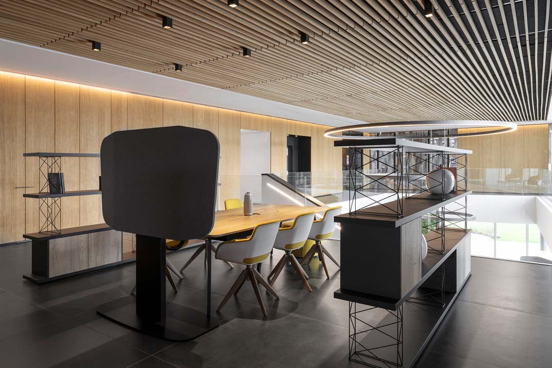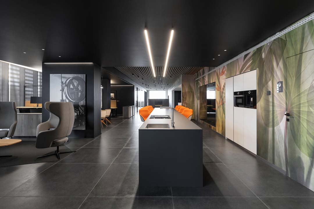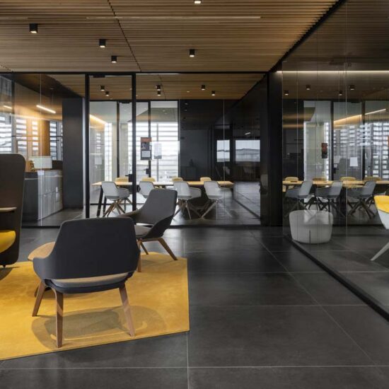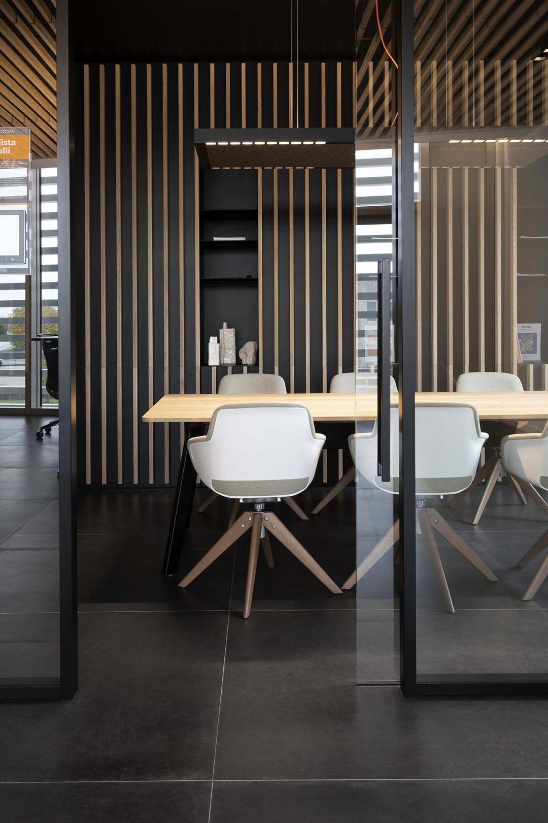 The offices’ internal layout is conceived to make the areas between the various sectors more comfortable and interactive, encouraging communication between them and, above all, the people who work in them. The materials chosen by the architects for the various interior areas followed the same principle, especially with regard to the porcelain stoneware ceramic surfaces, where Ragno products played a key role.