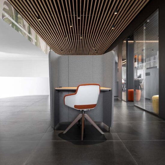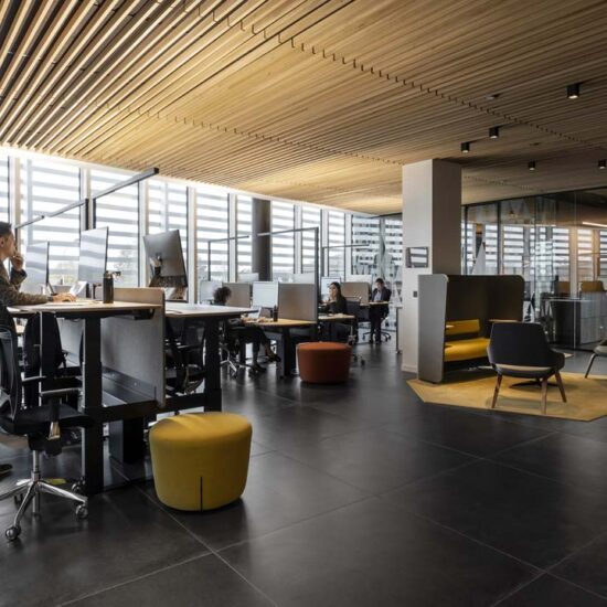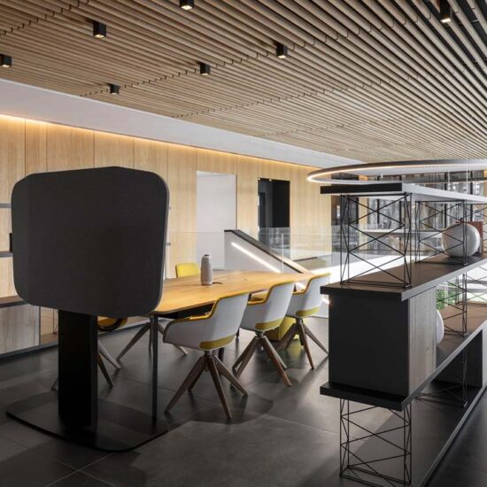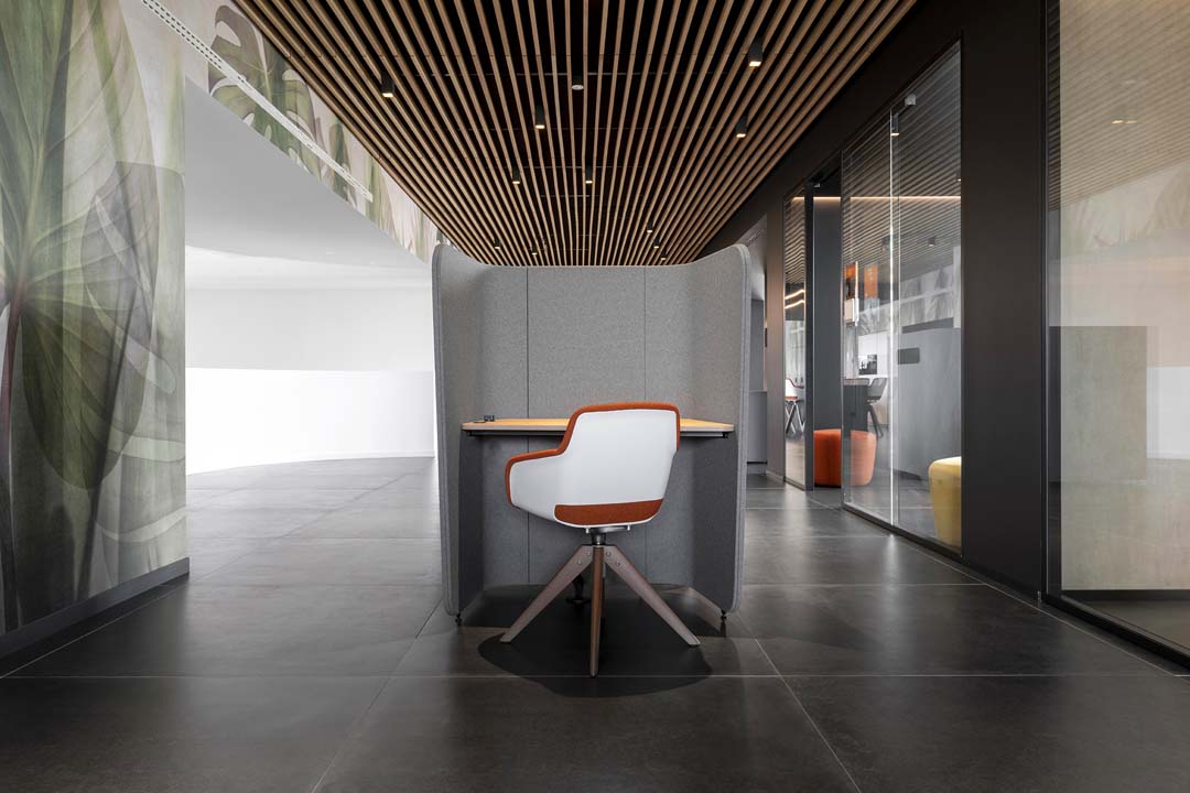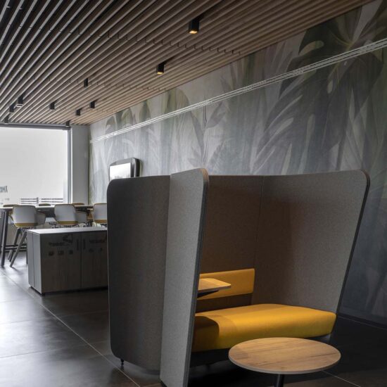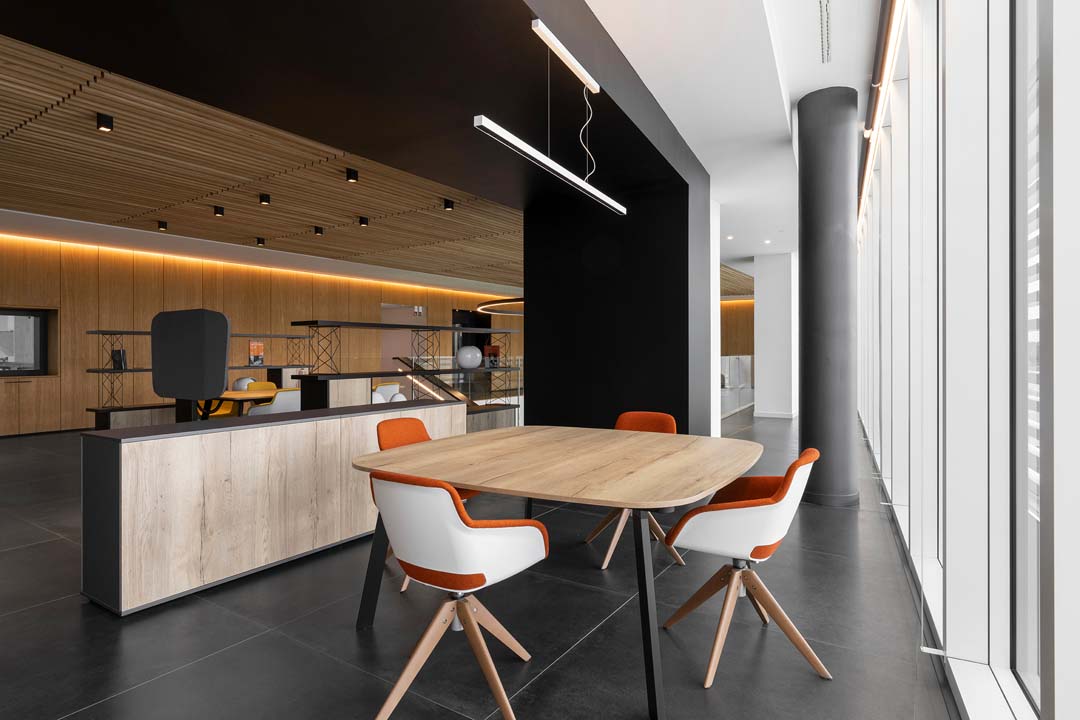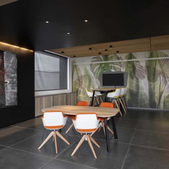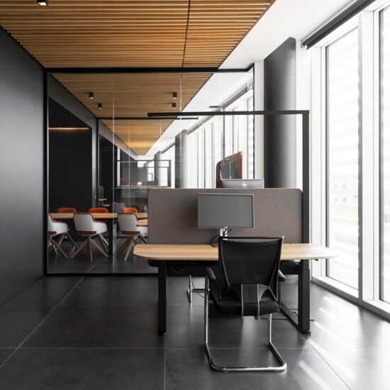 The self-laying system is a dry installation method which does not require metal fixtures or glue. When constructing a large building like the new Transfer Oil headquarters, this characteristic offers multiple benefits, including quick, easy installation. The raised floor system also creates a floor surface at a higher level than the structural floor. The horizontal cavity between the two is able to accommodate the utility networks, which continue to be accessible for changes, maintenance and repairs throughout the lifetime and use of the building.