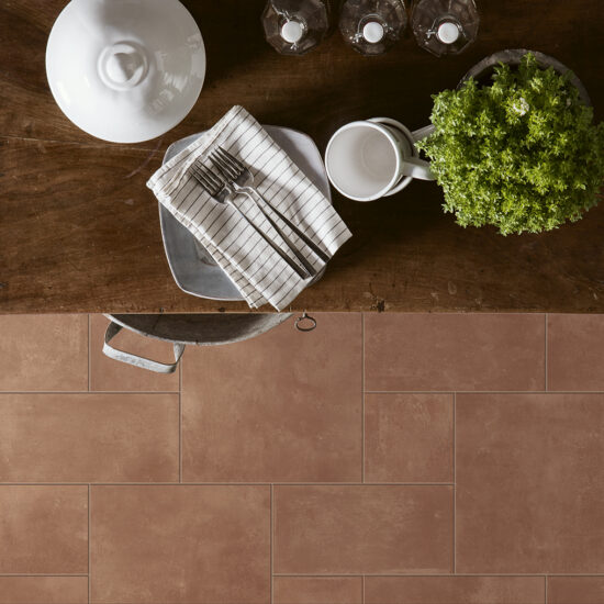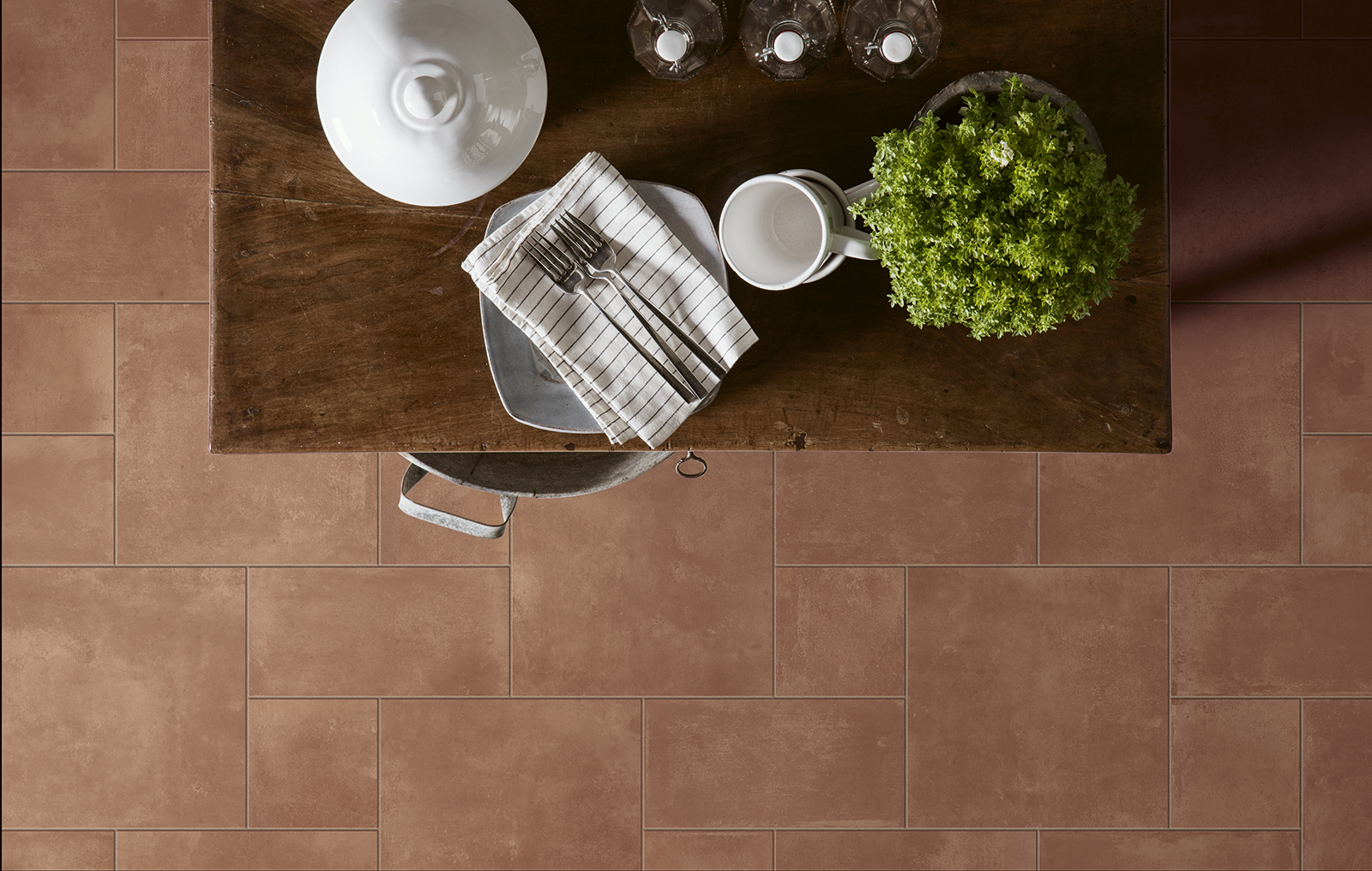 Terracotta-look is the ideal tactile material of inspiration for a kitchen that has its roots in tradition but still complies with the very latest interior design trends, creating a room with a genuine, warm, welcoming feel, the centre of a real home.