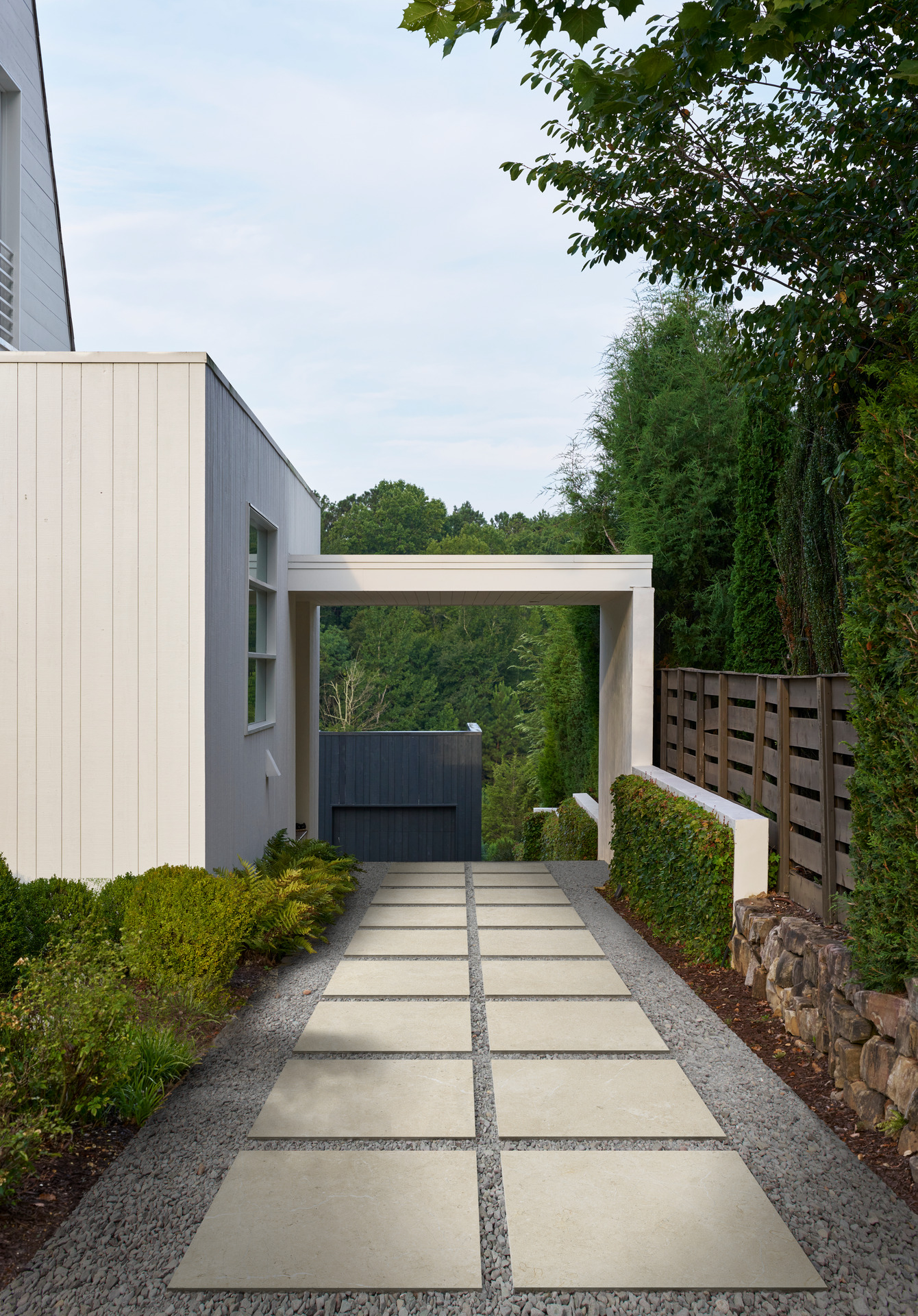 In a compact garden, every surface counts. So also applying porcelain stoneware on vertical surfaces can be the key to success.