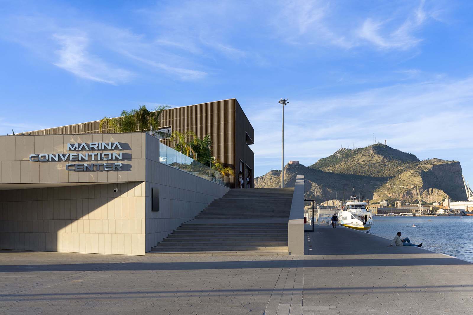 So Palermo Marina Yachting, opened just a few months ago, represents the major redevelopment of the whole waterfront, a massive project involving an area of 45,000 square metres, involving the demolition of rundown buildings and the creation of the cycle and pedestrian way to reopen the link between the Molo Trapezoidale quay and the historic Castello a Mare complex, closed to the public for many years.