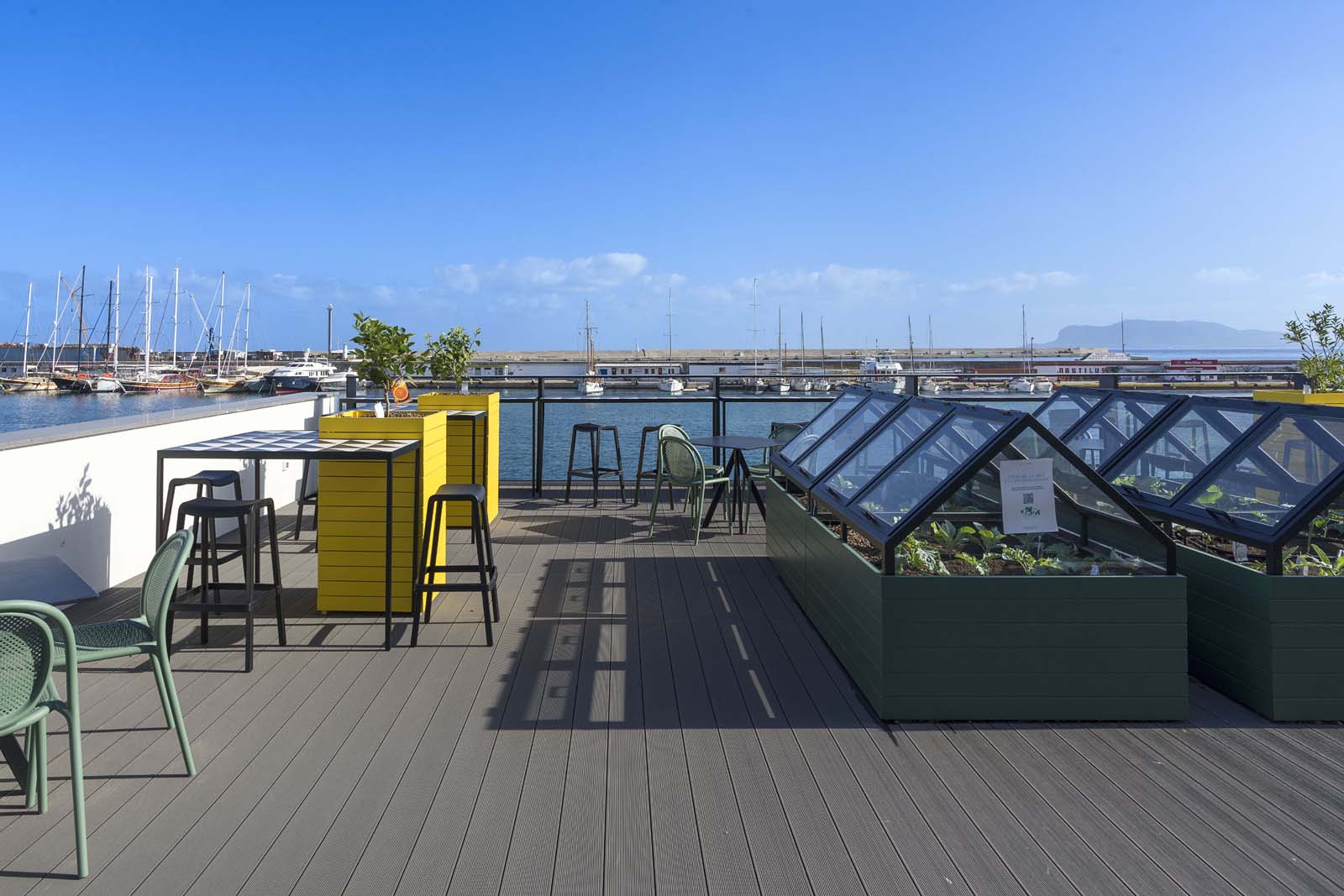 The new waterfront development, which has also involved the reorganisation of embarkation and disembarkation operations, provides 14 new mega-yacht berths, nine buildings and numerous hospitality and entertainment amenities, including an open-air theatre able to accommodate up to 300 people, a congress centre with three lecture rooms, three waterside restaurants, a spa, the Gambero Rosso Cooking Academy and a large number of businesses of which, naturally, a high proportion (43) offer outstanding Sicilian food and wines.