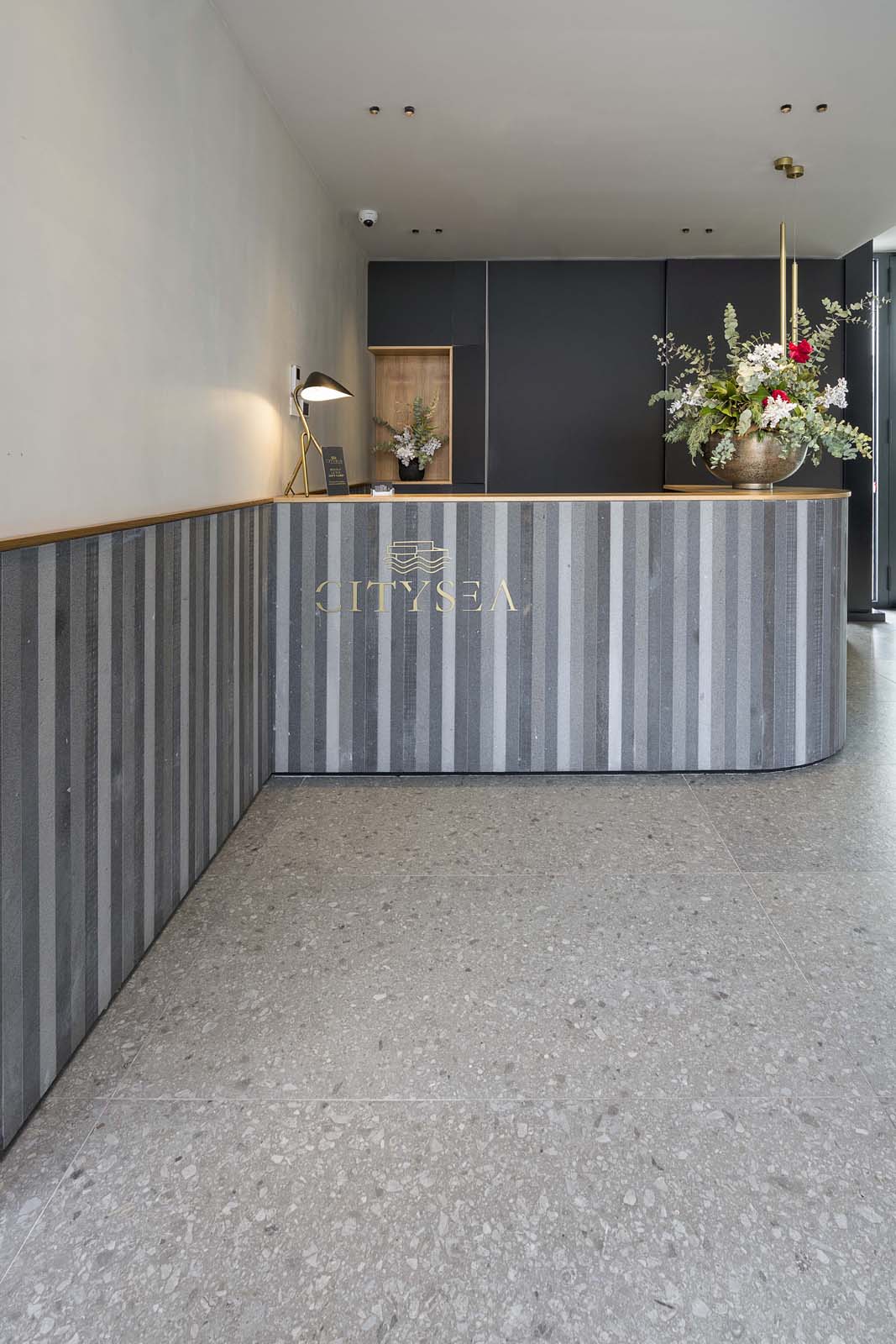 In contrast, the rich patterning and accurate reproduction of Ceppo di Gré stone of Realstone Navigli Grigio Naturale (75×150 cm) was chosen to decorate the retail areas and for the paving of the outdoor area, given its proven resistance to weather and salt spray and also its incorporation of the patented StepWise anti-slip technology. In addition to unprecedented ease of care and cleaning, Realstone Navigli also offers an exciting range of colors and a particularly soft texture.