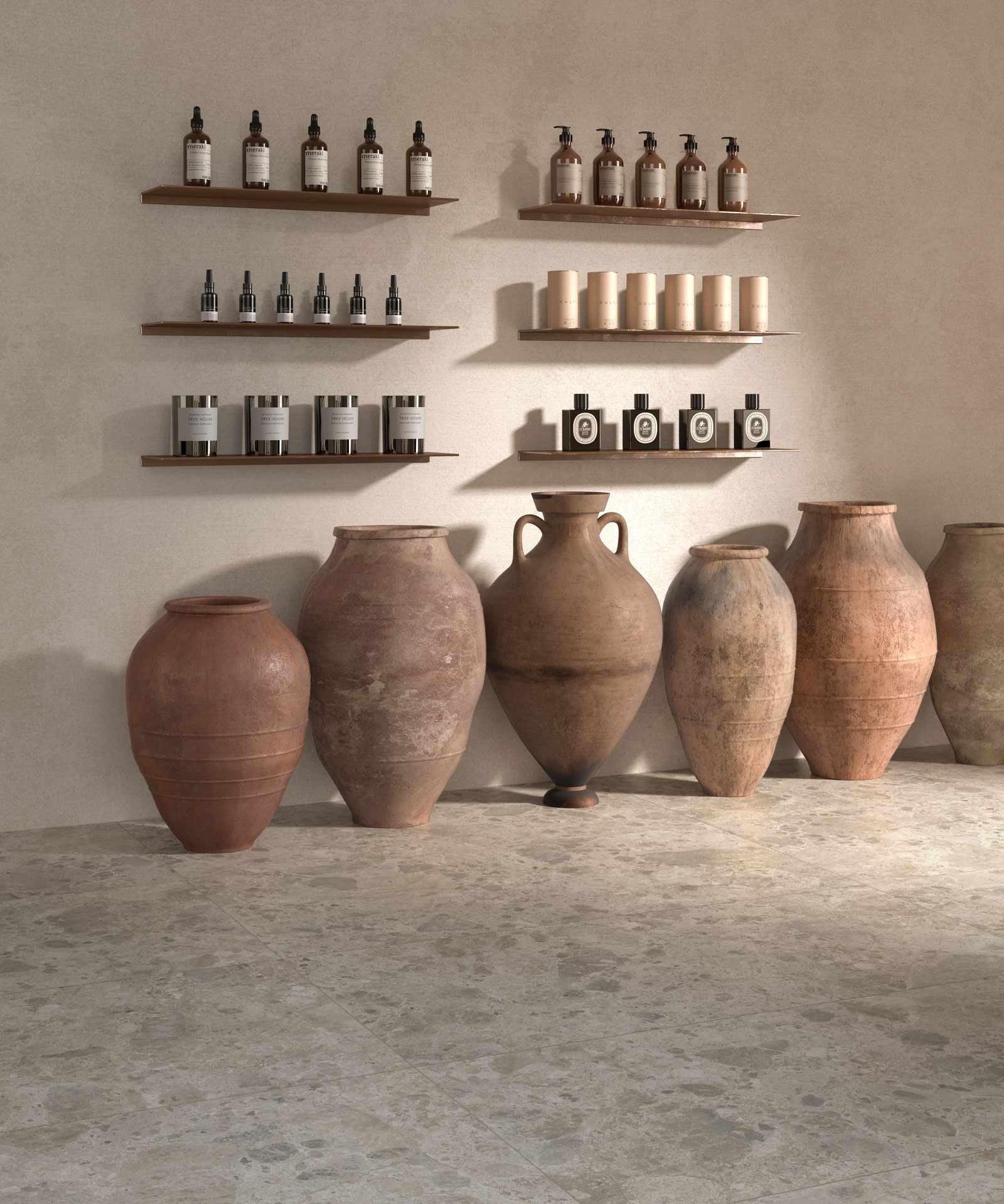 - after installation, porcelain stoneware must be thoroughly cleaned with specific detergents which ensure the complete removal of any construction site residues and thus protect the surface from the subsequent appearance of stains and smears