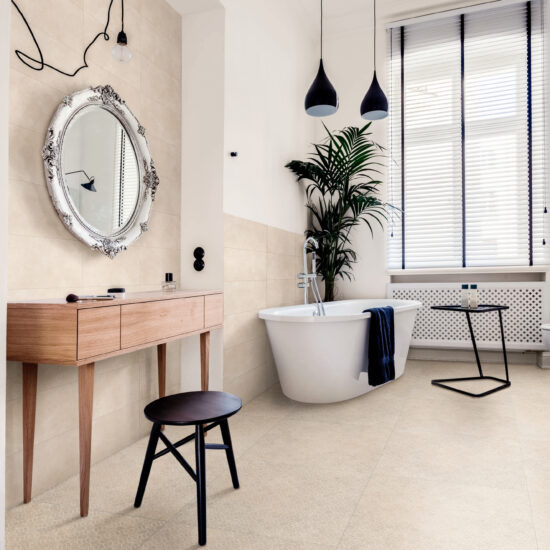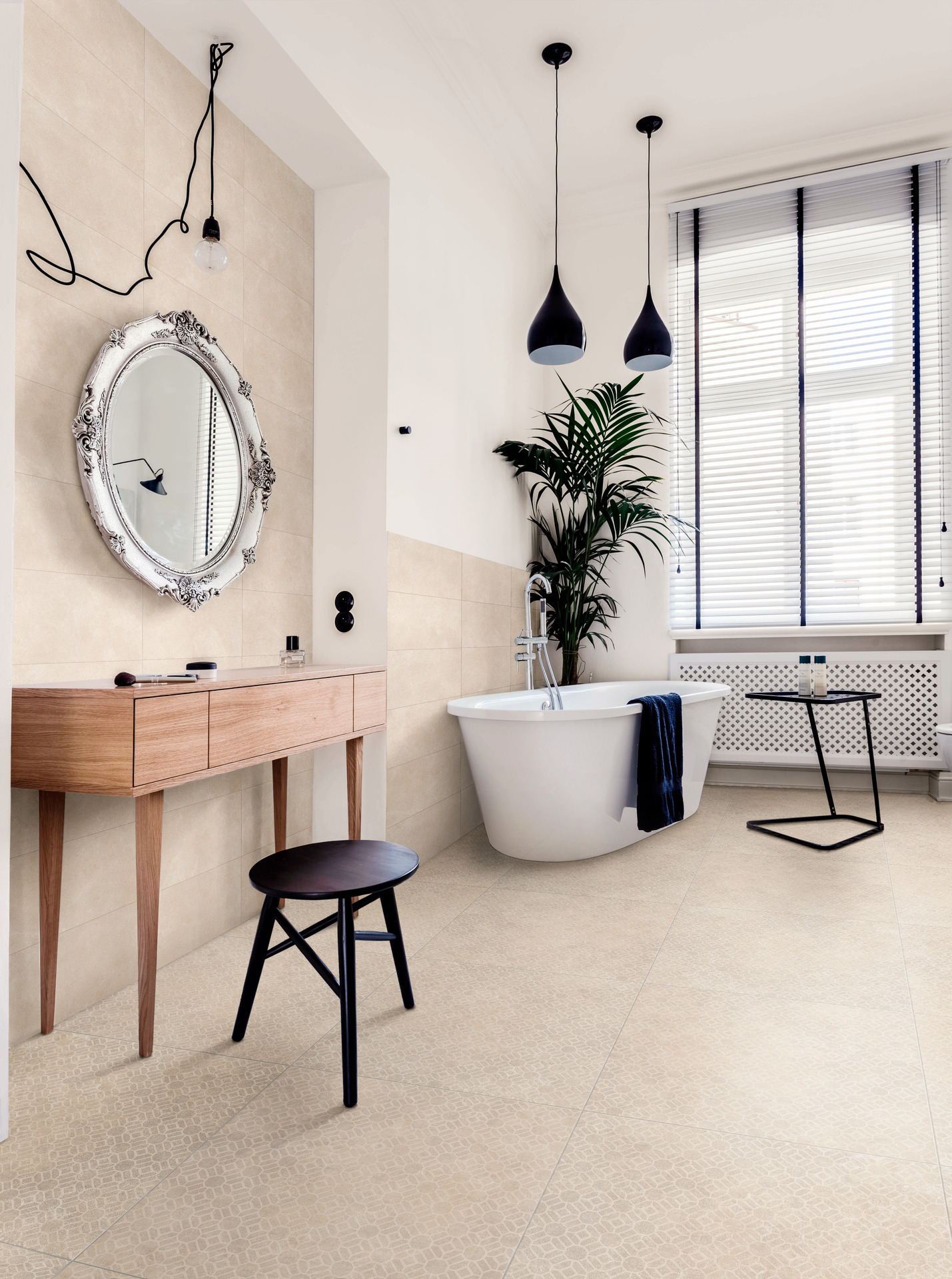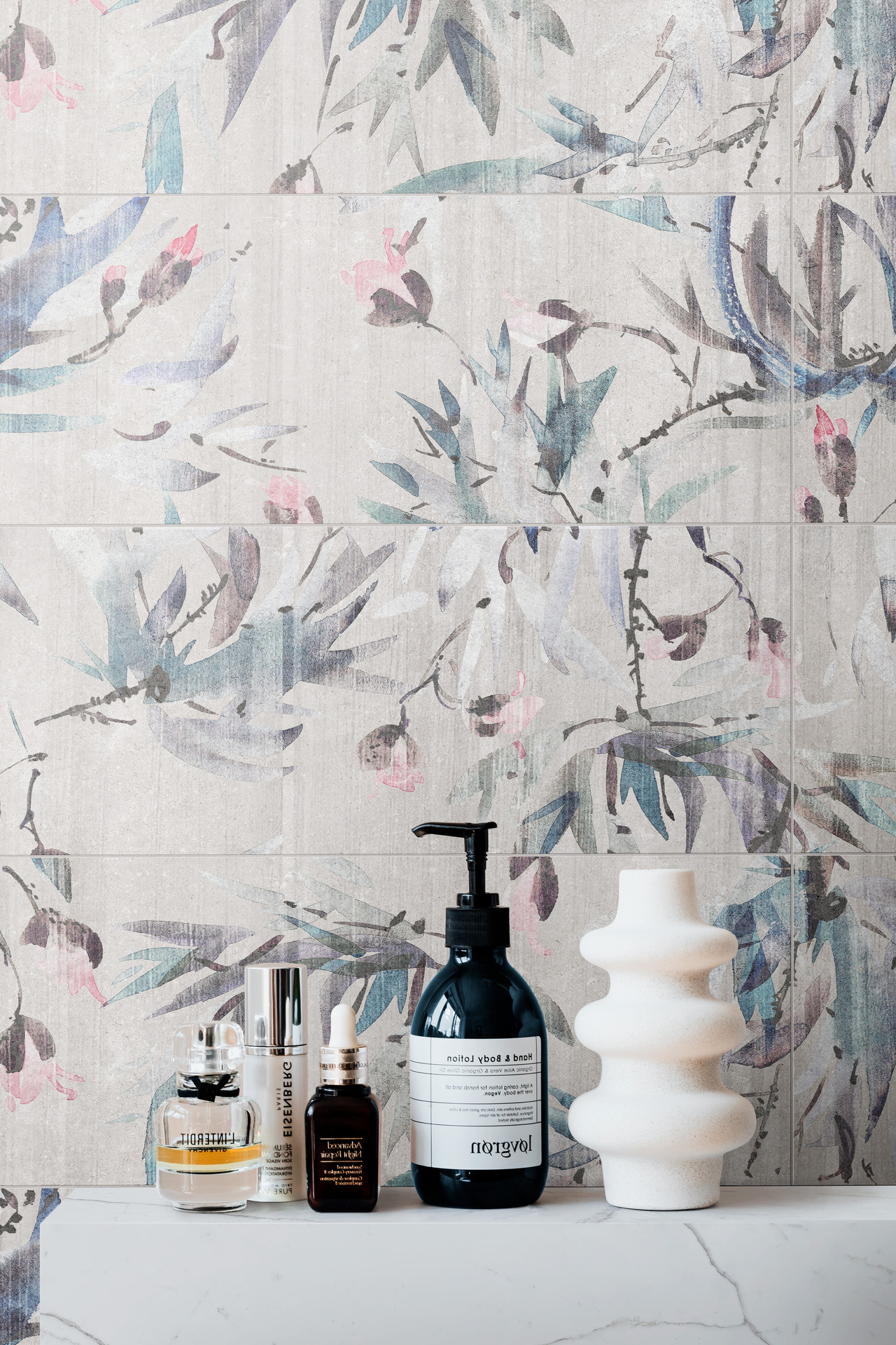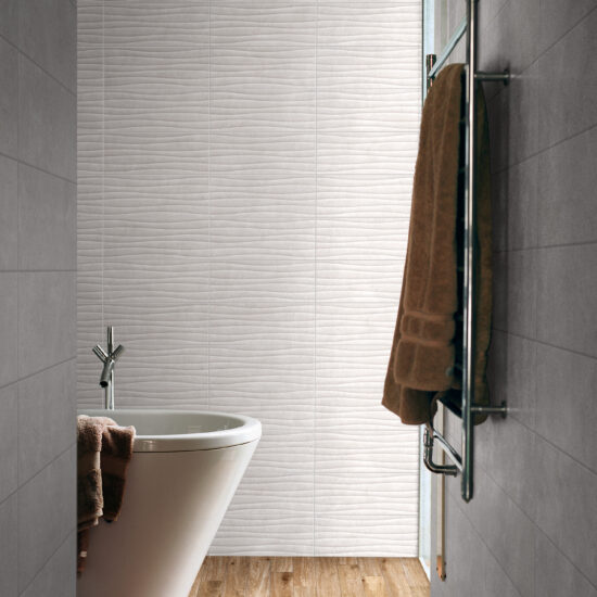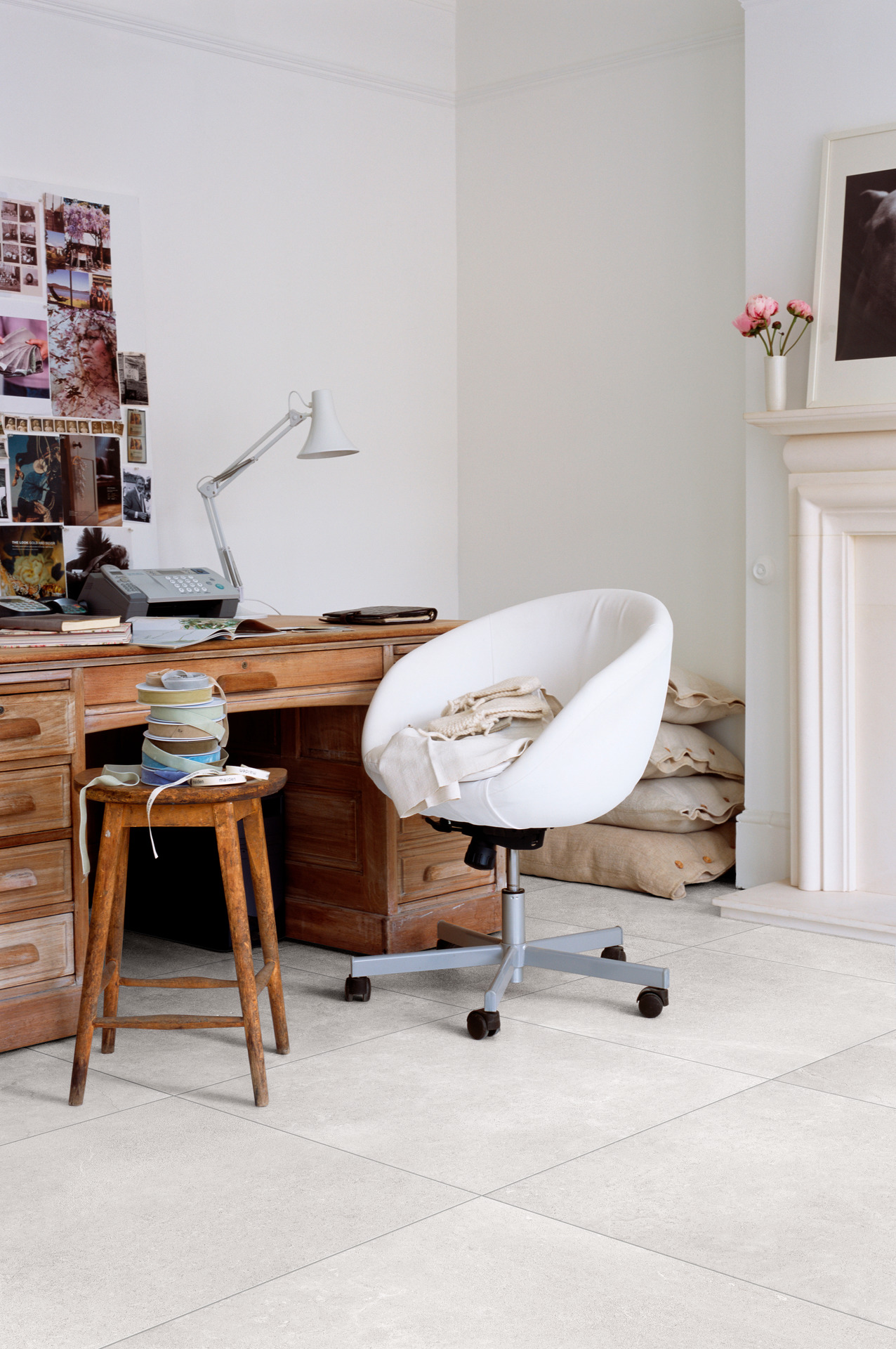 The monocalibre rectified porcelain stoneware tiles in the collection feature light, exquisite veining reminiscent of very ancient, timeless limestone. The neutral palette – ranging from white to grey and anthracite for the cold tones and from ivory to beige for the warm shades – redefines an informal, delicate style for a product with enduring appeal.