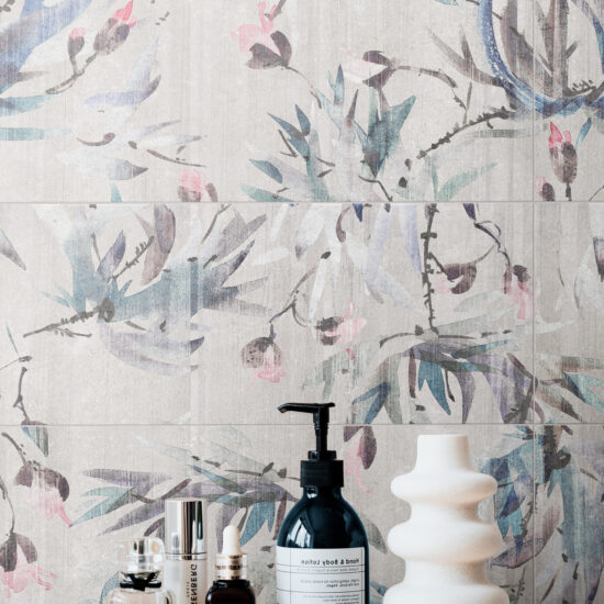 For the vertical wall coverings, Creek presents two sizes, 25×50 cm and the new 25×76 cm, both in 4 neutral colours, which enhance the collection’s stylistic vision, creating delicate, minimalist settings with decorative carpets that carry on the handmade tradition. There is a wide choice of decors to match, ranging from bucolic inspiration with stylised foliage to sophisticated ‘wind-effect’ surfaces, harmonious arabesque mixes with a carved effect and continuous tone-on-tone geometric patterns.