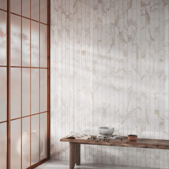 The Incanto collection takes inspiration from the Land of the Rising Sun in a sequence of attractive, comfortable rooms: the marble slabs are used to create beautiful regular geometric patterns. The color range comprises 13 shades of organic inspiration with marble-effect veining. The backgrounds are delicate and fluid, ideal for styling a tasteful, comfortable home.