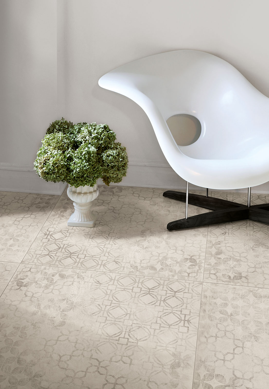 The Re_Solution collection by Ragno reinterprets these exquisite features and successfully conserves the material's unique character, even conserving one of its key prerogatives and almost its raison d'être: its ability to create a seamless surface, on a floor or wall, with no obvious fragmentation or break in the geometrical harmony.