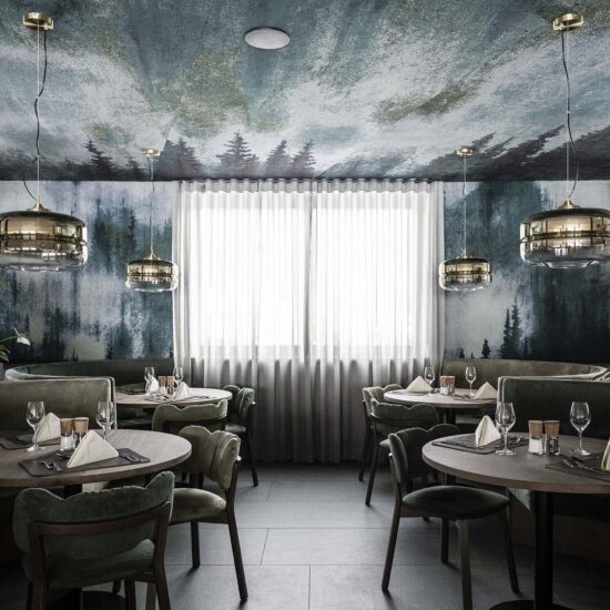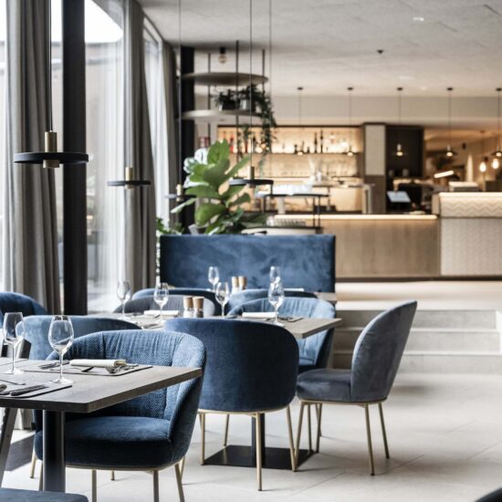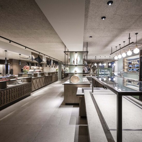 The color combinations of the ceramic surfaces in the various rooms also help to create the required mood of calm in the interiors and generate a feeling of wellbeing for guests. The stoneware used in the restaurant zone – expanded and complete with terrace with play area, designed on three levels to provide everyone with a view of the lake and with furnishings inspired by the natural surroundings – is taken from various collections, emphasising the versatility, multiplicity and practicality of Ragno’s solutions.