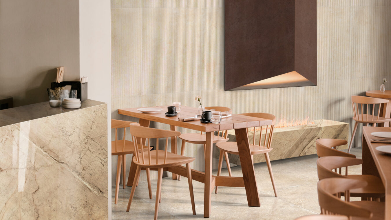 The two different patterning types are the key to versatile, original combinations, in an attractive mix & match with other surface effects – in particular with polished wood or marble – and with small glossy wall coverings from the Ragno collections, or even combined with each other for ‘total look’ effects with great expressive power.