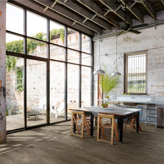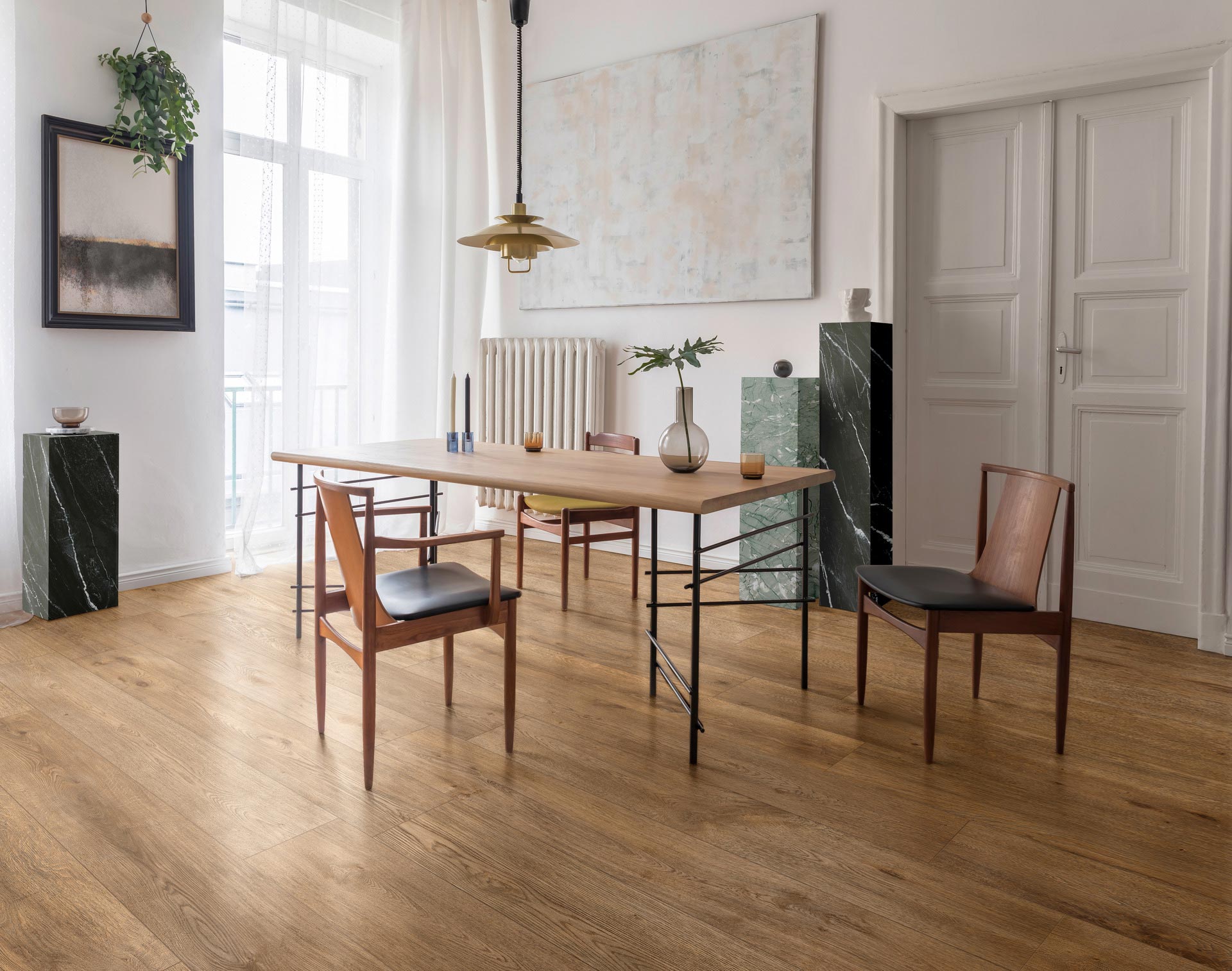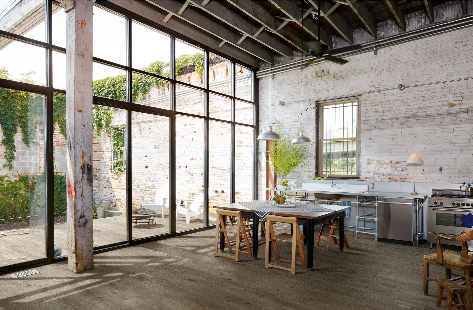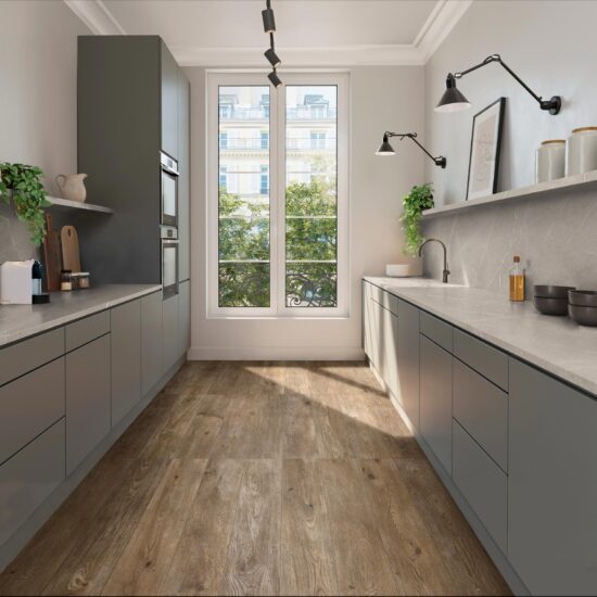 By choosing a concrete or marble effect stoneware floor covering or a parquet with a running-bond or herringbone layout, you can clearly proclaim your adoption of a style and an idea of what a home should be.