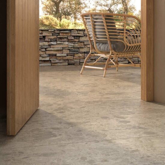 Looking through the many solutions and ideas for the floors of the home, to achieve a stylish overall effect we might opt for a surface in which every discontinuity is masked by the large size of stone-effect porcelain stoneware slabs, with only moderate shade variation, with straight, rectified edges and colored grouts.