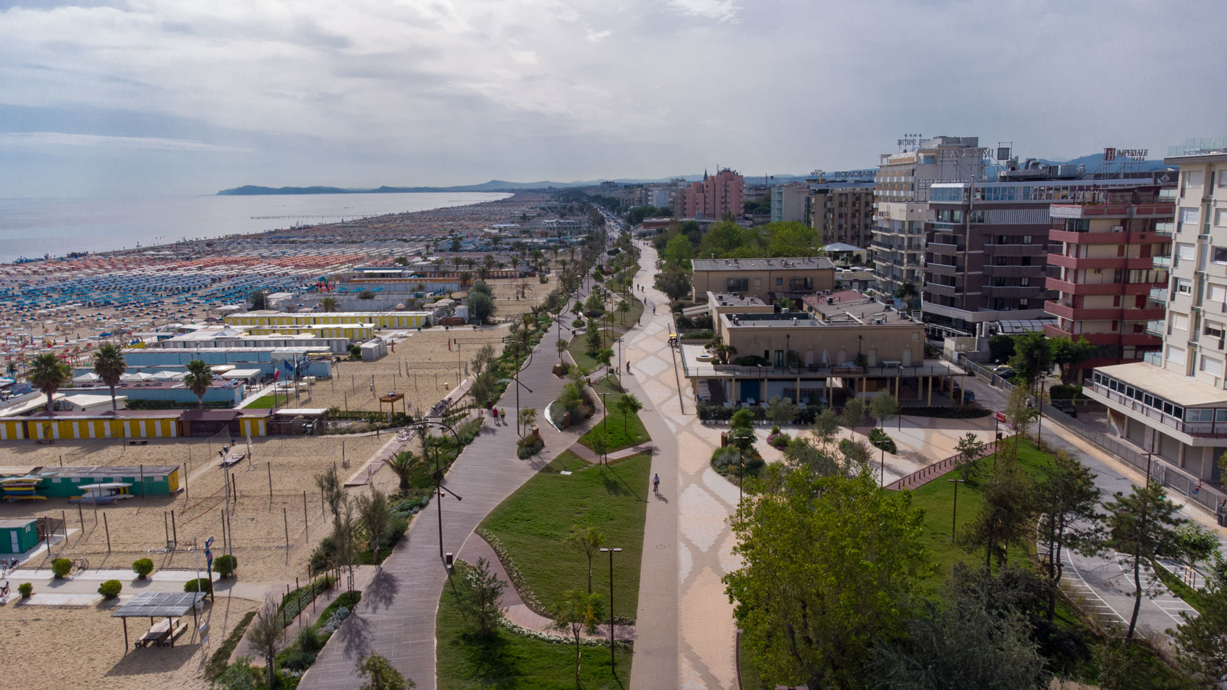We’re also working on a large number of urban renaturalisation projects. One of these is the Parco del Mare, the big project for the regeneration of the Seafront in Rimini; it’s an urban regeneration and landscaping scheme that will provide a natural link between the town centre and the beach over no less than 16 kilometres of coastline. The regeneration project also includes a strategy for adaptation to climate change, since the height of the seafront promenade is being increased by 80 centimetres to keep the sea at bay.