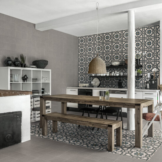 It’s a design choice that fits perfectly with simple furniture with curved, informal lines to create an authentic, comfortable kitchen. As an alternative, combining these tiles with more contemporary furniture can create an intriguing contrast, which blends the antique with the modern, craftsmanship with innovation and tranquillity with dynamism, generating a fascinating, aesthetically stimulating stylistic mix.
