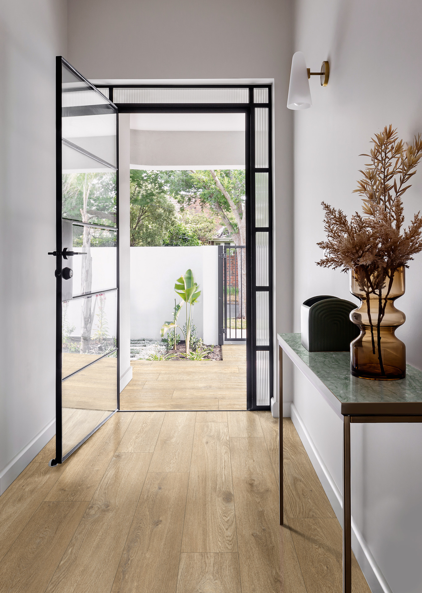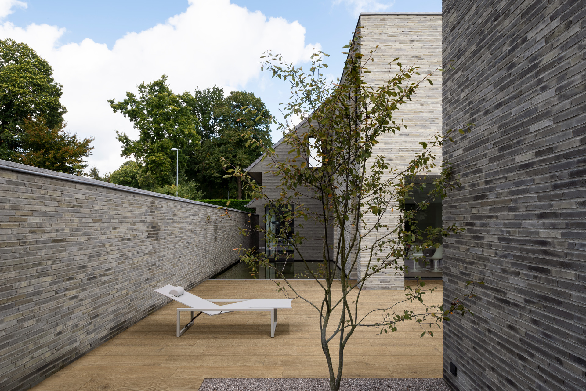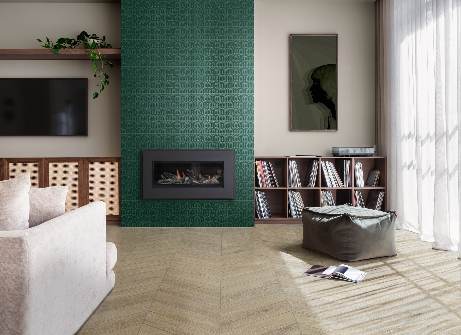 Style and technology merge effortlessly in Ossimori, the new wood effect collection by Ragno Ceramiche in four delicate natural colours – Avorio, Beige, Miele and Marrone – available in the 25×150 and 20×120 cm sizes, in the 11×54 cm Chevron and in the 20×120 cm size with Outdoor surface, for large, luminous spaces that blur the boundaries between indoors and outdoors in continual dialogue with the whole home.