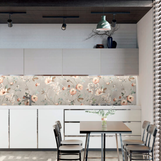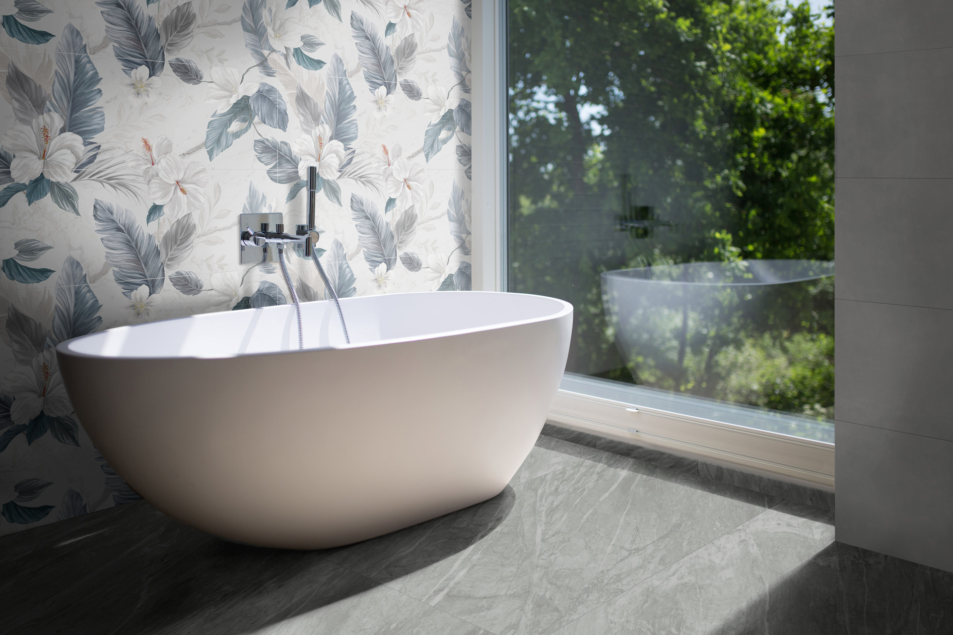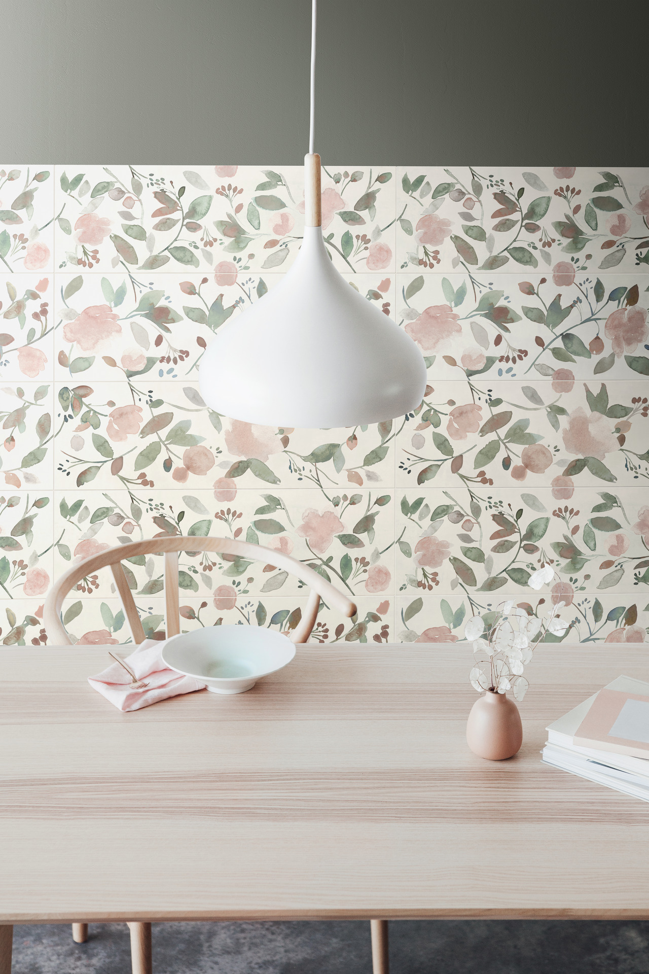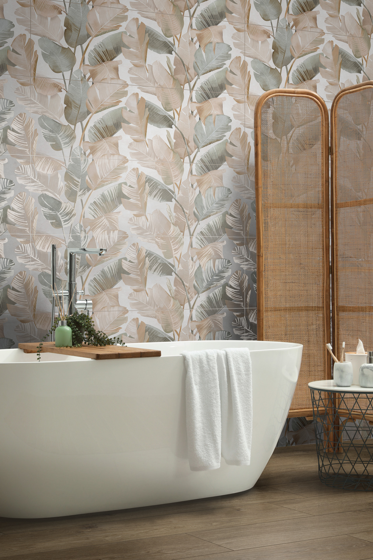 Used as an alternative to traditional wallpaper, decorative tiles with floral patterns combine outstanding design with practicality. Unlike wallpaper, porcelain stoneware is extremely resistant to damp and wear and very durable: it’s immune to water splashes, steam and thermal shock, making it ideal for locations like your bathroom or kitchen. What’s more, it doesn’t fade in sunlight and nor does it require regular maintenance. Stoneware tiles are easy to clean: all you need is a damp cloth and a neutral detergent to wipe away dust and dirt, with no risk of damaging the surface or harming the pattern.