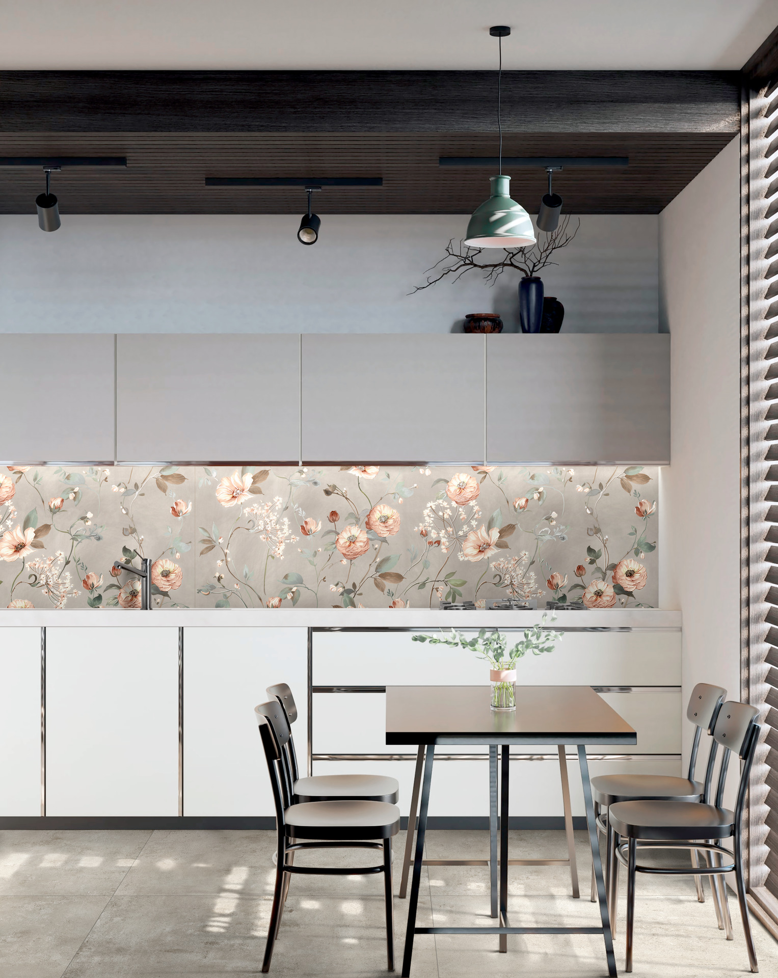 In terms of appearance, latest-generation ceramic technologies are able to provide exceptionally fine details and realistic textures that accurately reproduce the weaves of fabrics and grain of paper, but with all the functional benefits of ceramics. These materials offer beauty with technical performance, transforming floral coverings into a durable, exquisite solution that will fit perfectly into any interior design scheme.