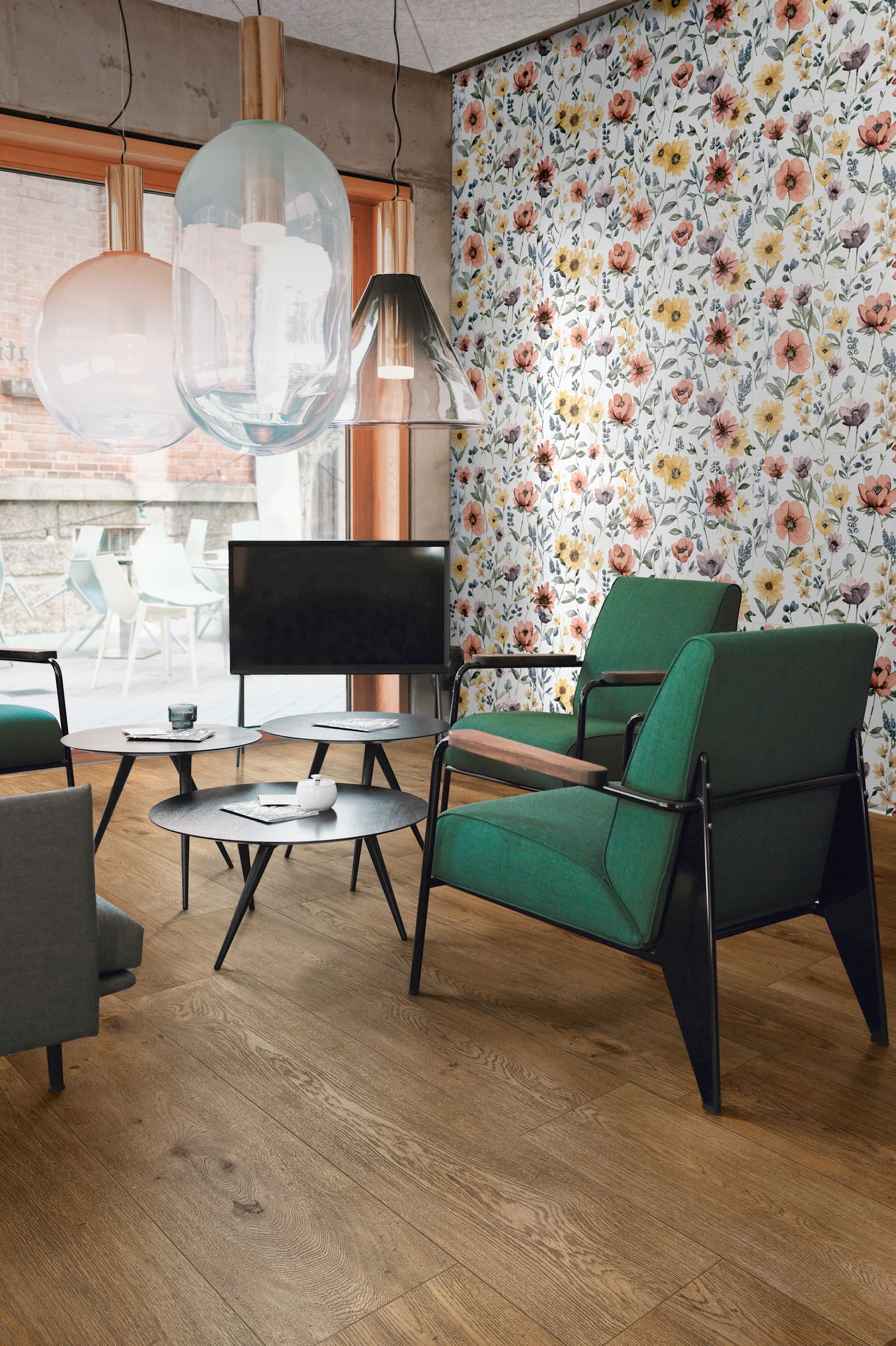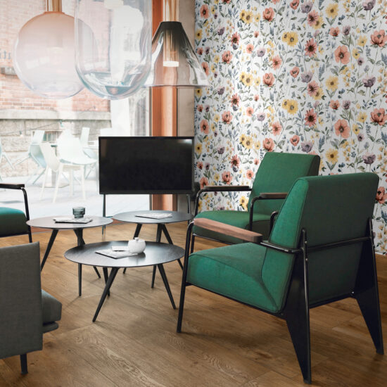 Last but not least, Decora features decorative motifs in artistic style, an elegant addition to modern yet characterful interiors. The color assortment of neutral shades and exquisite brighter highlights is ideal for contemporary living rooms and bedrooms with high design values. The result is a balanced blend of nature, art and architecture, where every covering plays a role in defining the interior’s identity.