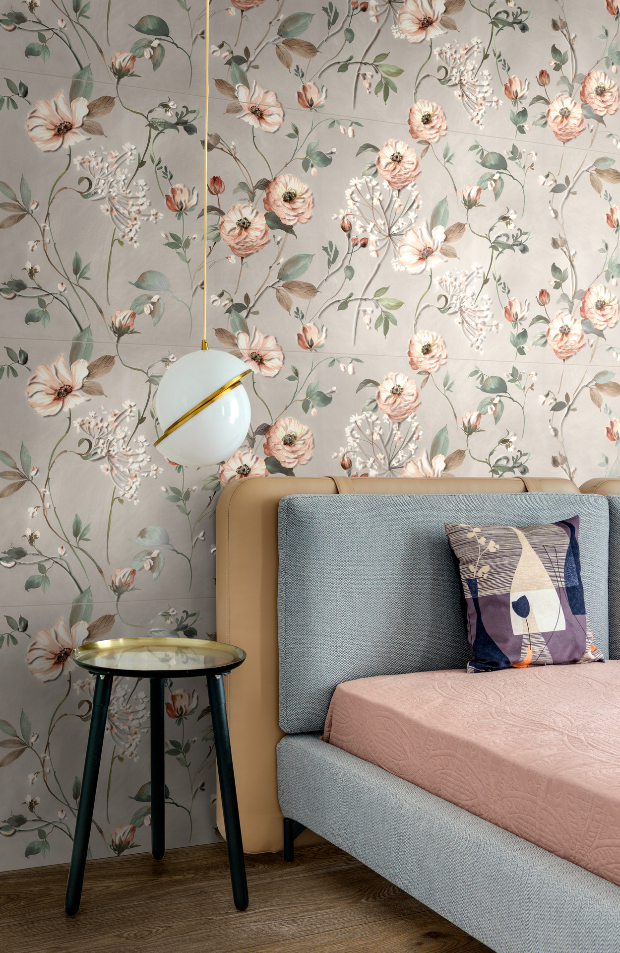 Floral wallpaper-effect tiles are a way of rediscovering the beauty of nature in a new form, where style and technology meet in thrilling yet functional surfaces. Be inspired by the beauty of flowers blooming on ceramic surfaces: explore the Ragno catalogue to find the collections that best express your idea of what home means.