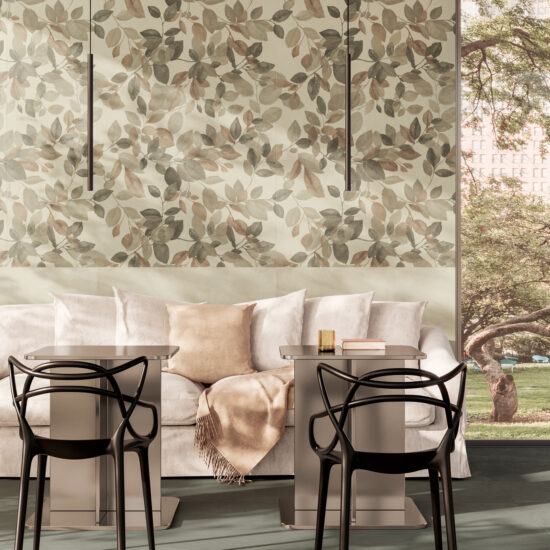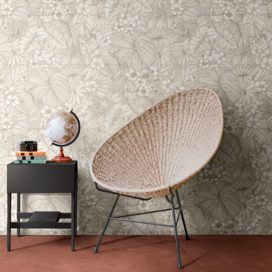 Barely discernable botanical motifs, thin lines and nature-inspired graphic compositions provide the perfect decoration for walls where character is required but excess would be unacceptable. These tiles’ delicate textures and light background colors, such as ivory white or talc grey, enhance interiors’ radiance and merge attractively with materials like wood or concrete-effect stoneware. The Ragno collections offer wall coverings that reinterpret the floral universe with simplicity, providing ideal solutions for anyone in search of an immaculate style that still has plenty of personality. In this context, the floral wallpaper effect is no longer mere decoration: it’s a discreet yet telling design choice.